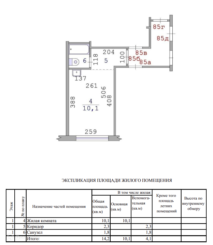 Общая площадь 14.2 м2
