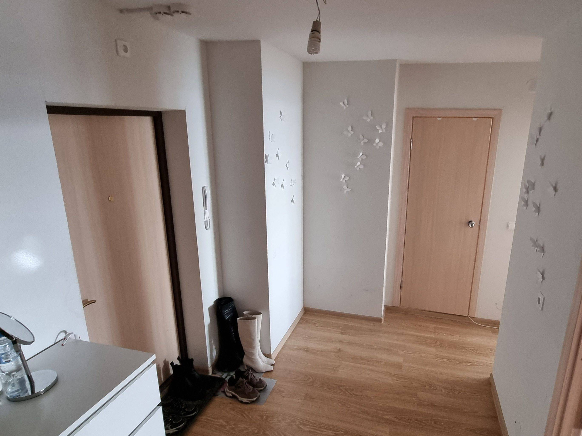 На стенах обои под покраску, что позволяет легко менять цвет под свои пожелания.