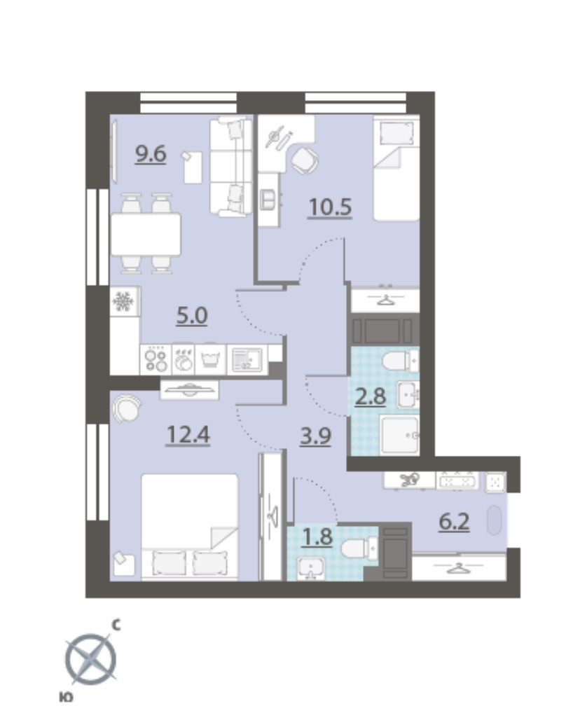 Количество комнат 2