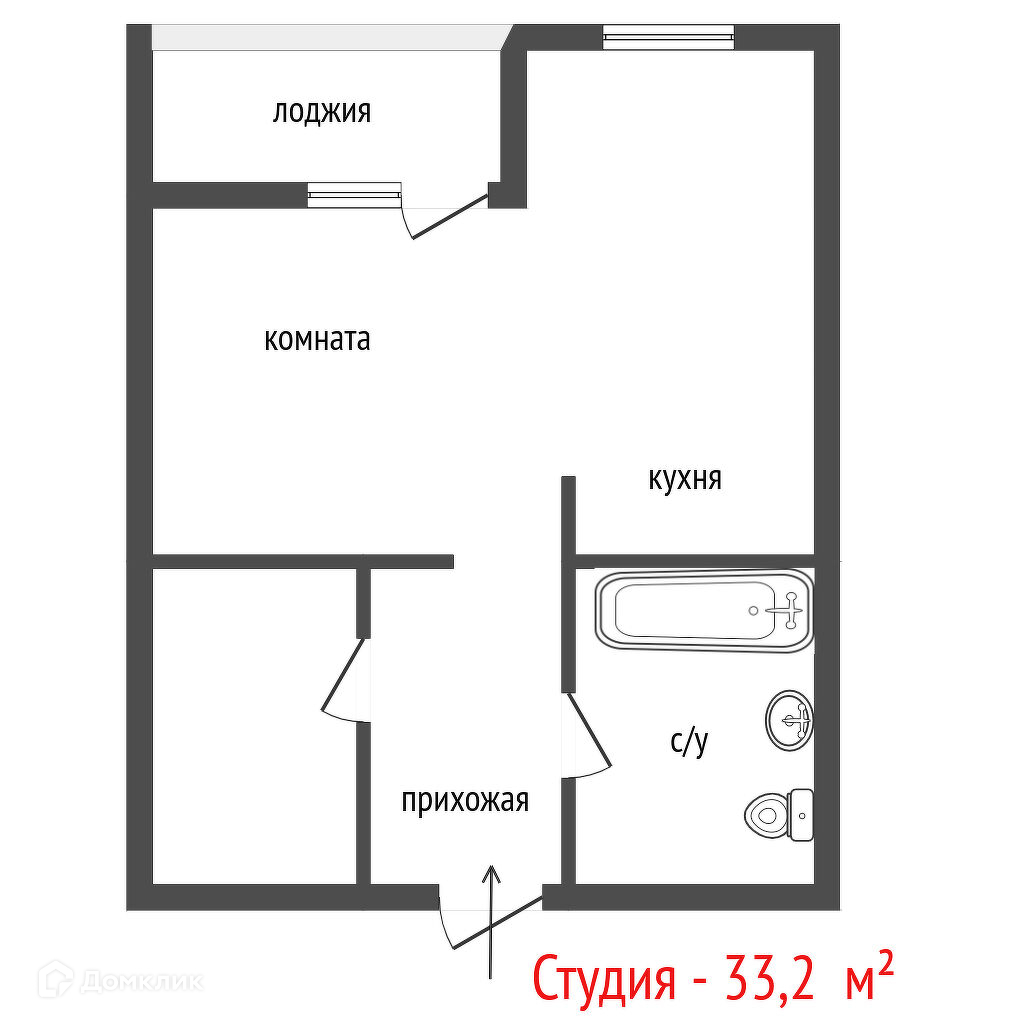 Общая площадь 33.2 м2