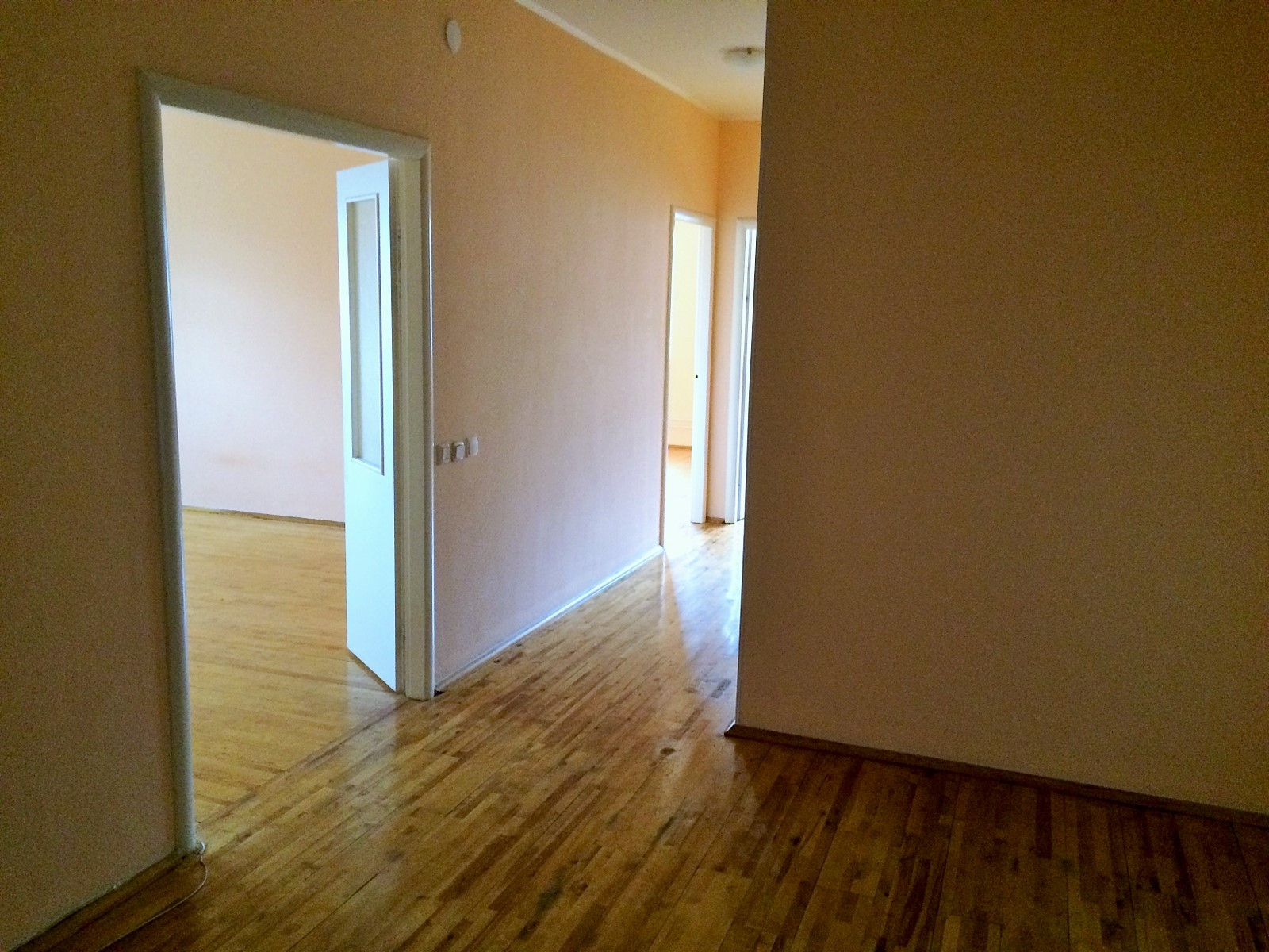 Высота потолка 2,8 метра. Кухня 14 м2, две комнаты 26 м2 ( с выходом на лоджию) и 20м2, в коридоре отдельная гардеробная комната. Два санузла, застекленная лоджия. Квартира светлая, окна смотрят на юго-восток и на юг. Закрытая дворовая территория.