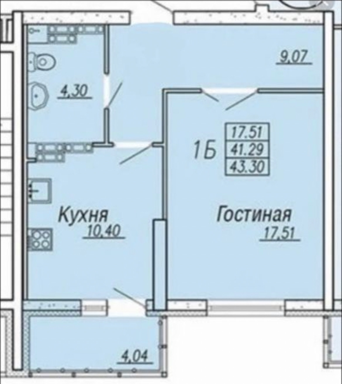 Общая площадь 40.3 м2