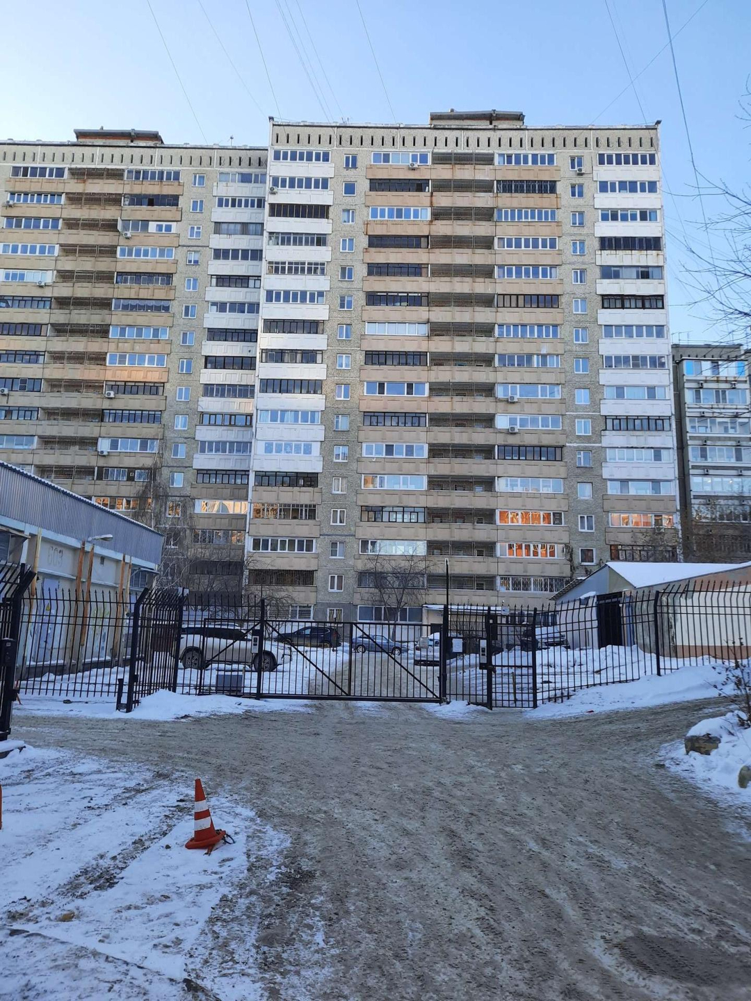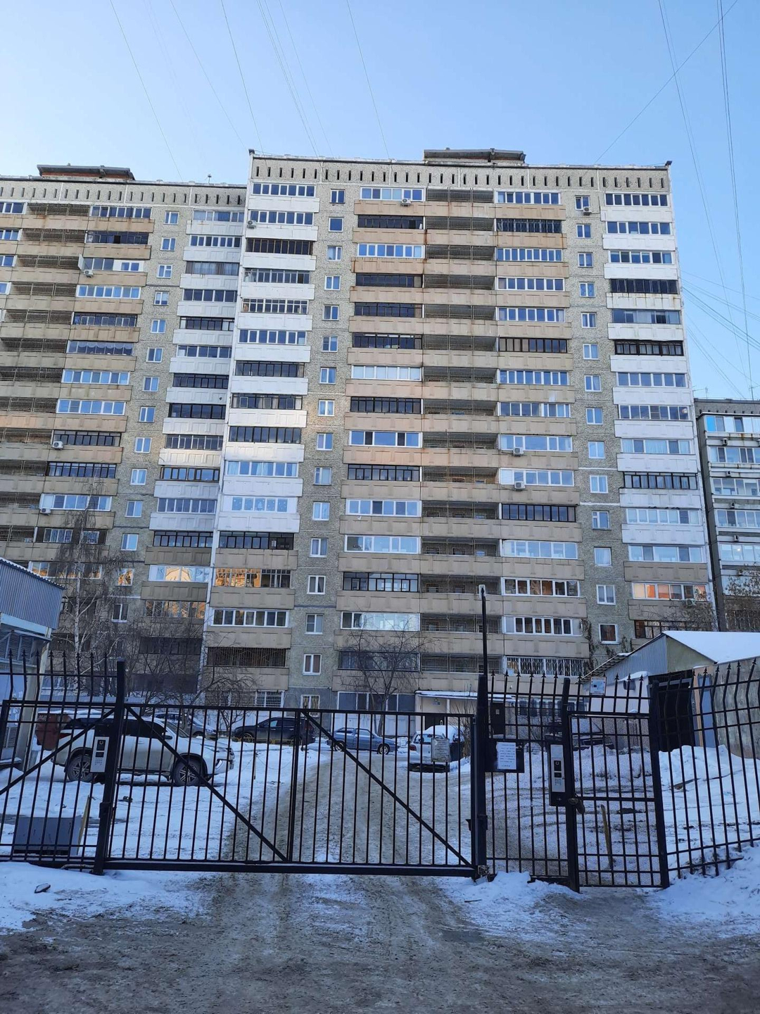 Большая территория двора с тремя калитками (можно выйти как на ул. Серова так и на Сурикова, что очень удобно), с местами для парковки ( заезд во двор через автоматические ворота) и с 3 детскими площадками.