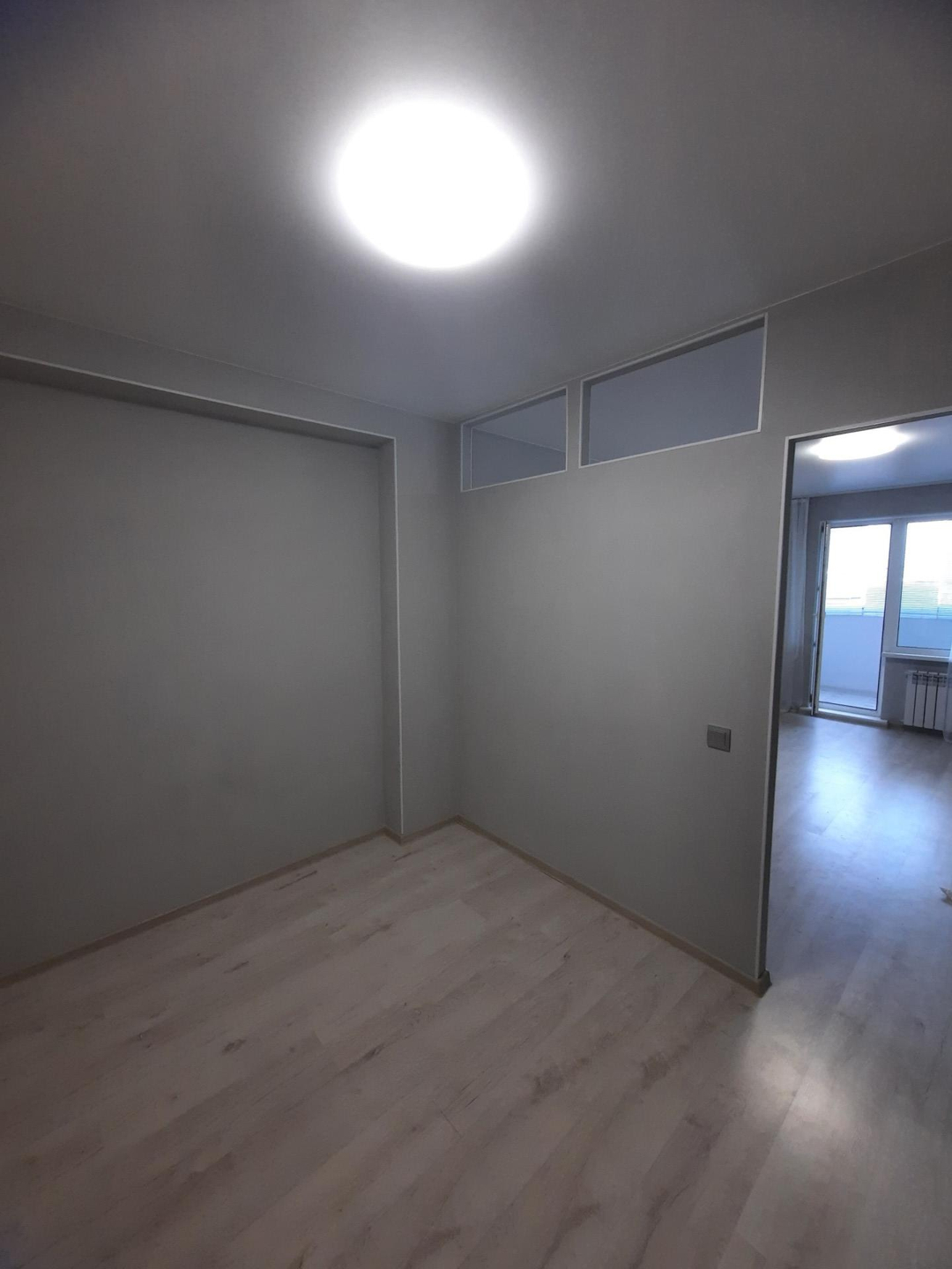Огромная застекленная лоджия 9.2 кв.м. с прекрасным видом на город, выведено освещение, на полу керамогранит и теплый пол ( можно оборудовать дополнительное полезное пространство).