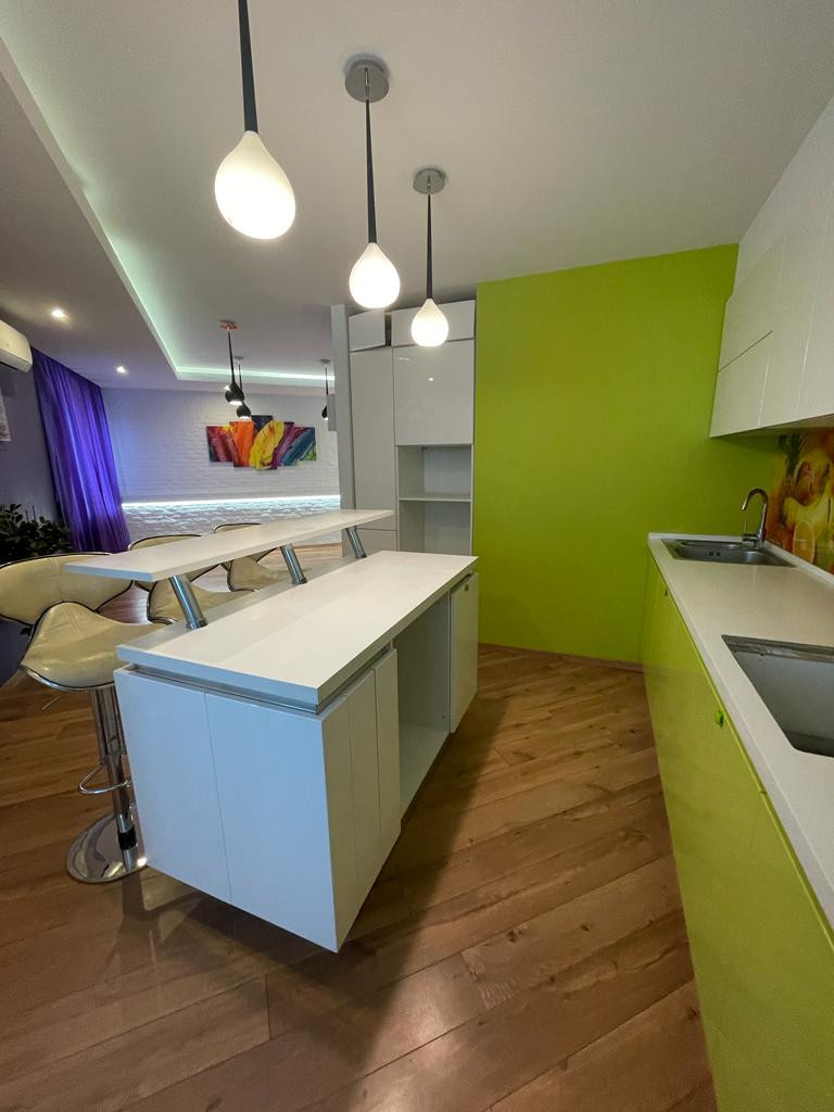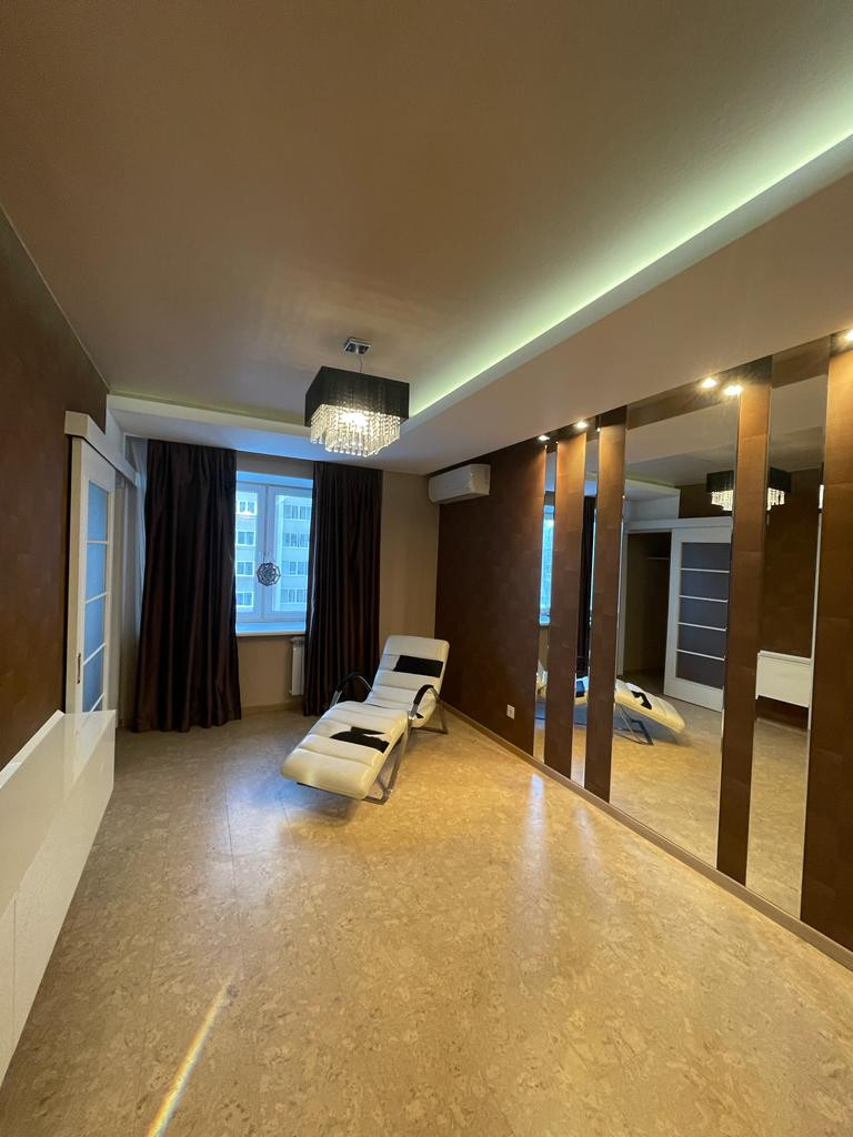 В квартире выполнен ремонт: поменяны окна, теплые полы в санузлах и прихожей, на полу плитка и ламинат, установлены кондиционеры в каждой комнате, гардеробная, утепленная лоджия, ванна с гидромассажем. Окна квартиры выходят на две стороны света.