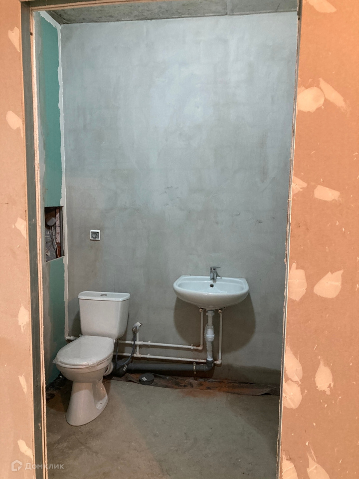 Установлен унитаз и раковина. Есть вывод домофонной линии (что редко сделано в новостройках). Хорошие окна и откосы.