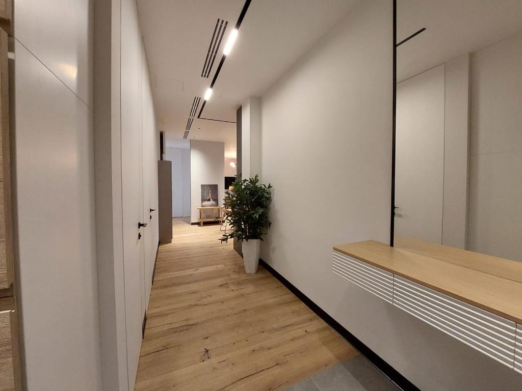 Инженерные системы квартиры включают в себя новейшие технологии: датчики присутсвия и света, шторы с электроприводами, автоматическое поддерживание климата, высокая шумо- и теплоизоляция, адиабатическое увлажнение воздуха, 4-ступенчатая очистка воды. В квартире всегда много свежего воздуха, при этом можно не открывать окна, что защищает от пыли и городского шума.