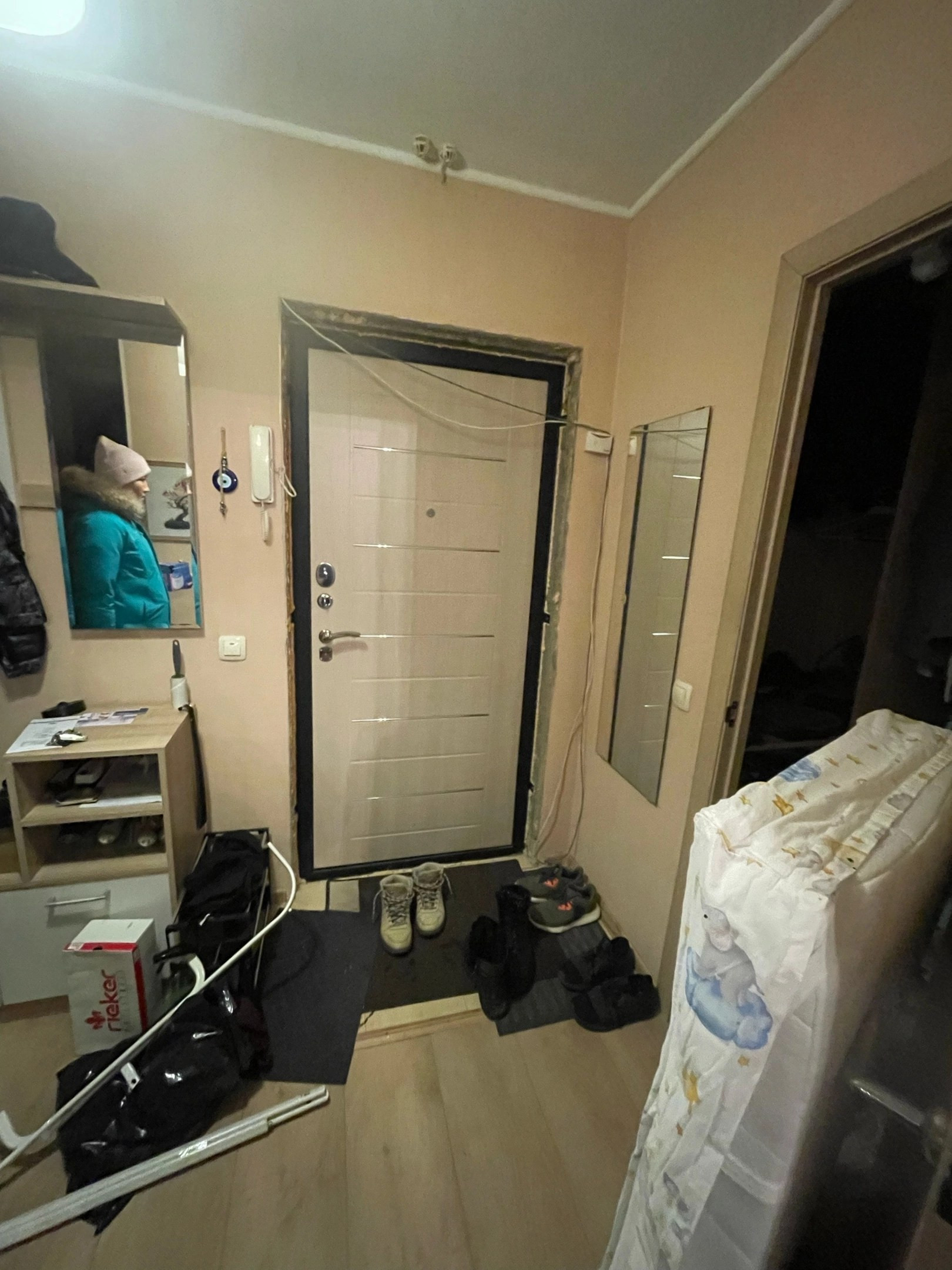 Планировка очень удобная, просторная, большой санузел в кафеле, в прихожей гардеробная, что позволяет не покупать шкаф, вся мебель ( кухонный гарнитур, двухспальная кровать, пристенная мебель, мебель в коридоре) и техника ( холодильник, плита, микроволновка, стиральная машина) в квартире остаётся новым хозяевам.