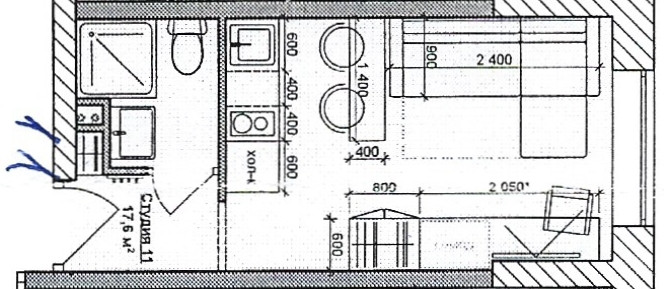Общая площадь 18 м2