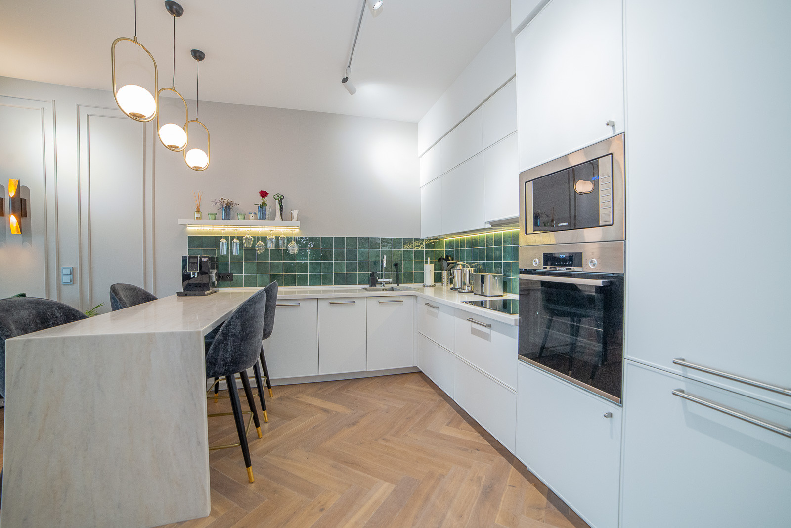 В квартире выполнен дорогой ремонт по индивидуальному дизайн-проекту, использовались исключительно качественные, гипоаллергенные материалы, например, на полу паркетная доска, а в детской "пробка". А вся корпусная мебель сделана под заказ и останется в подарок, а также оставим большую удобную кровать, шикарный диван и кухонный гарнитур с техникой.