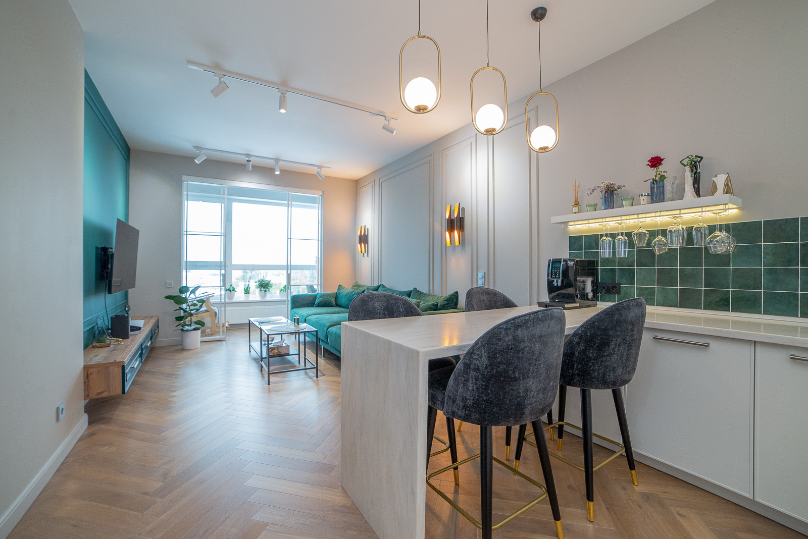 Изумительная квартира с высокими потолками и панорамными окнами - много естественного света и воздуха. Просторная, эргономичной планировки: кухня- гостиная + 2 спальни, раздельный санузел и техническое помещение - лучше не придумать.