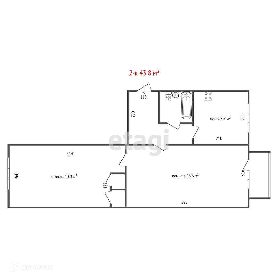 Общая площадь 43.8 м2