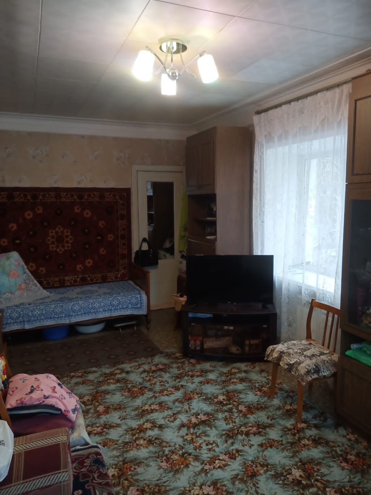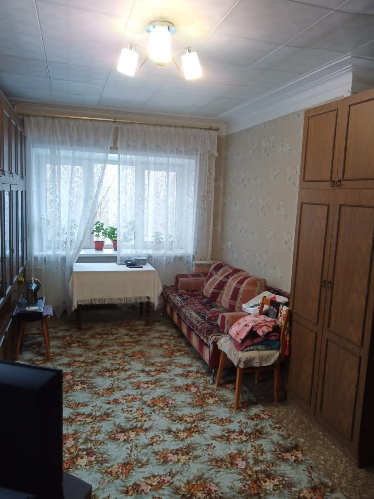 Уютная квартира в центре города, окна выходят во двор дома и в торец, без балкона.