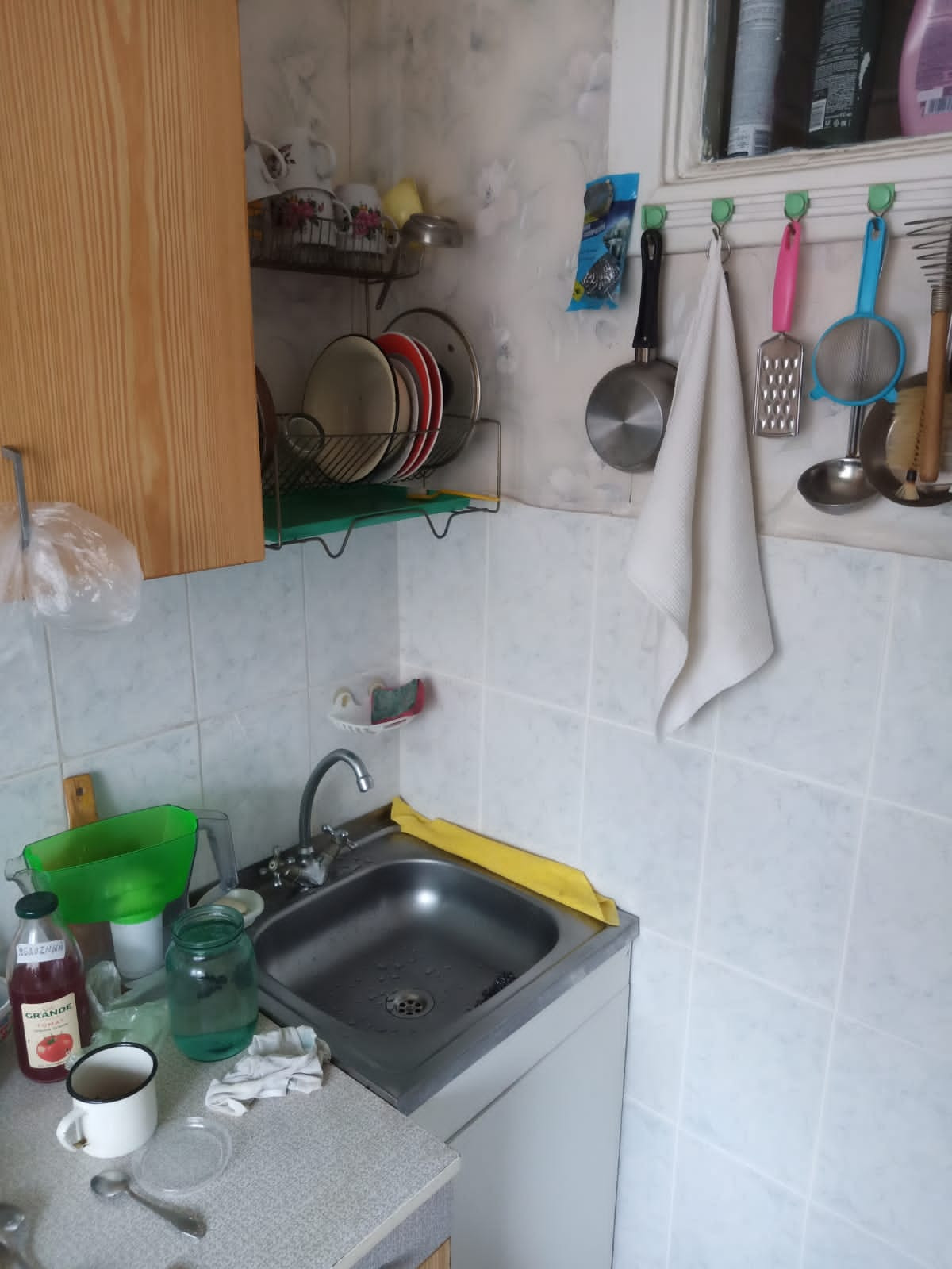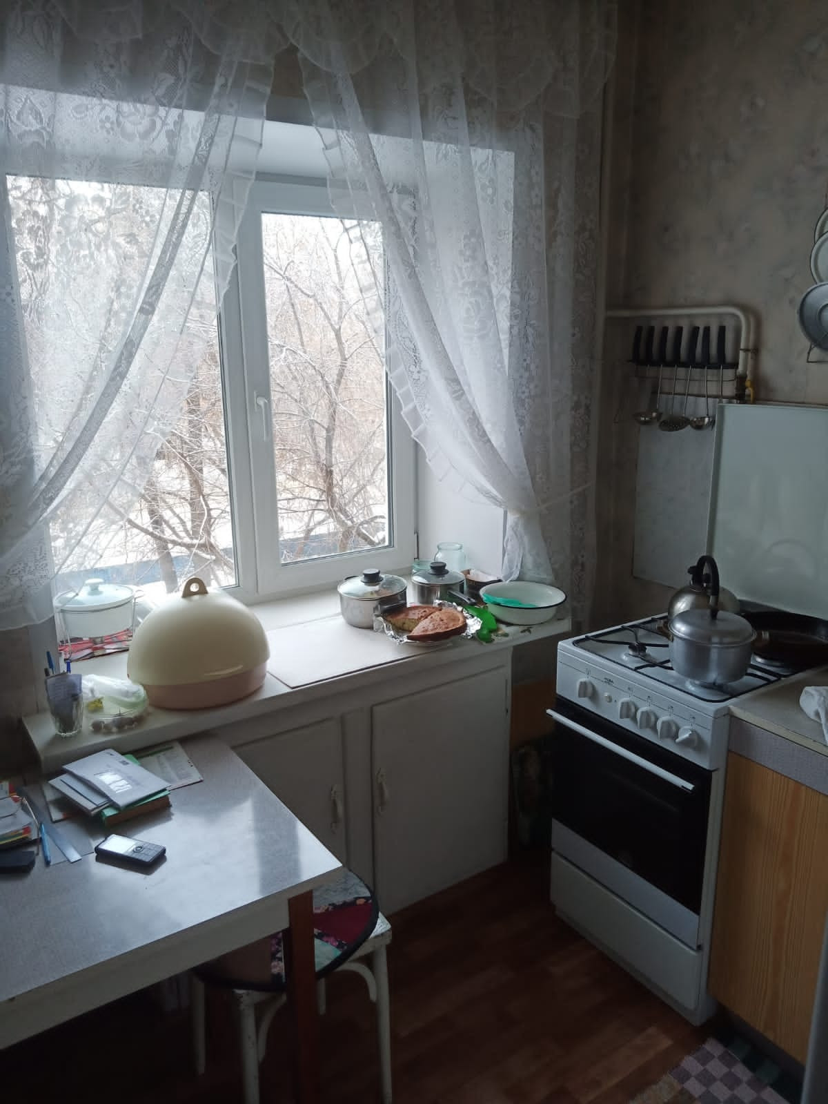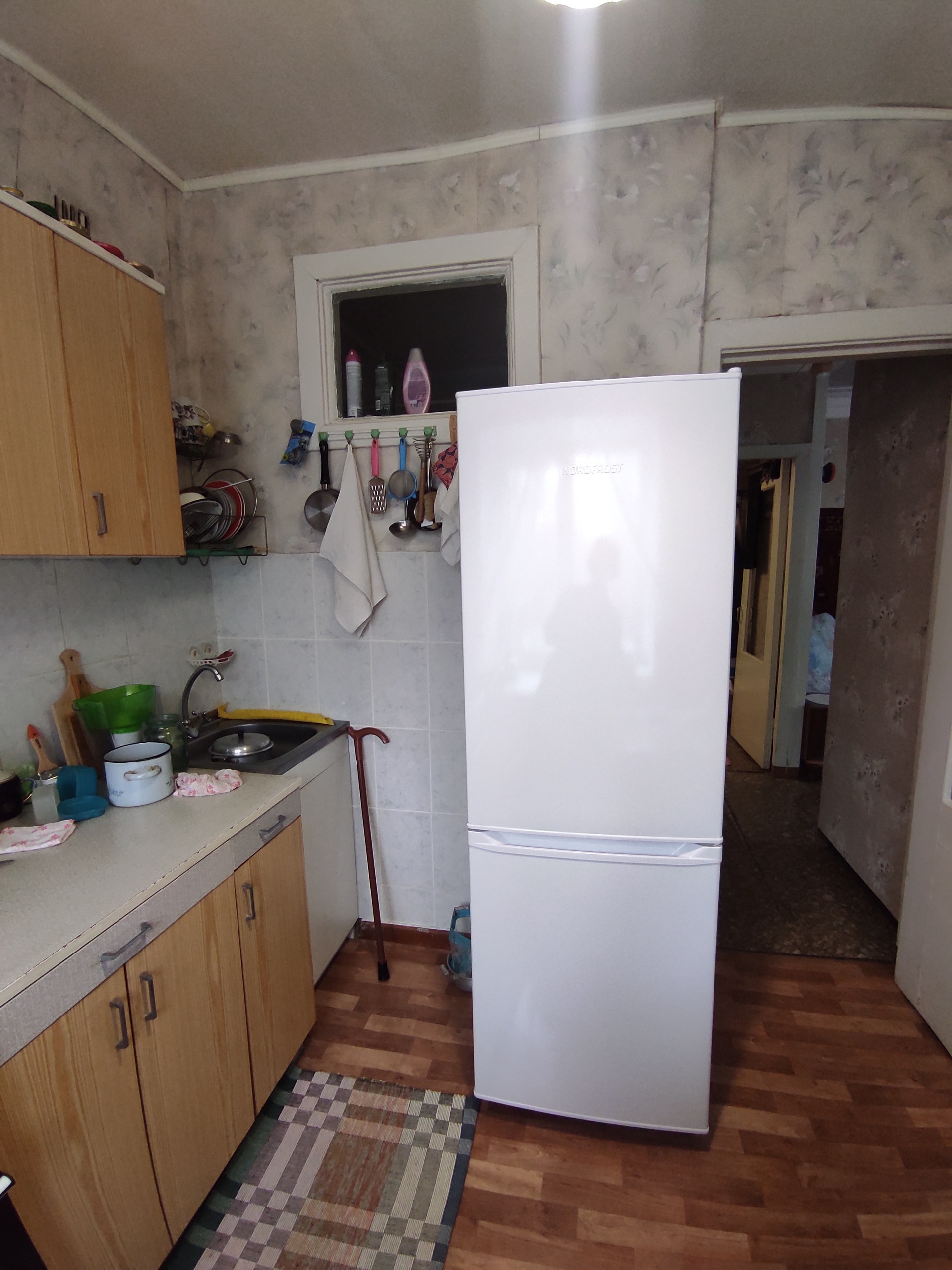 В комнате есть вместительная кладовка, на кухне - "летний" холодильник, под окном, для хранения солений, варений.