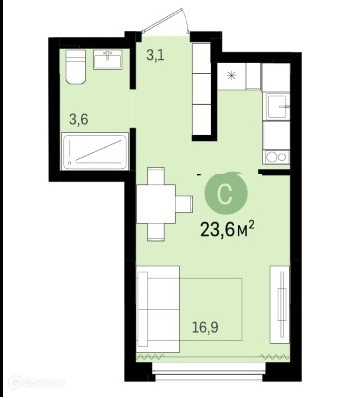 Общая площадь 23.6 м2