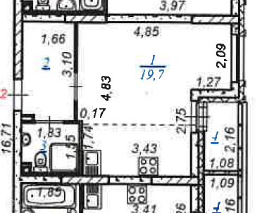 Жилая площадь 19.7 м2
