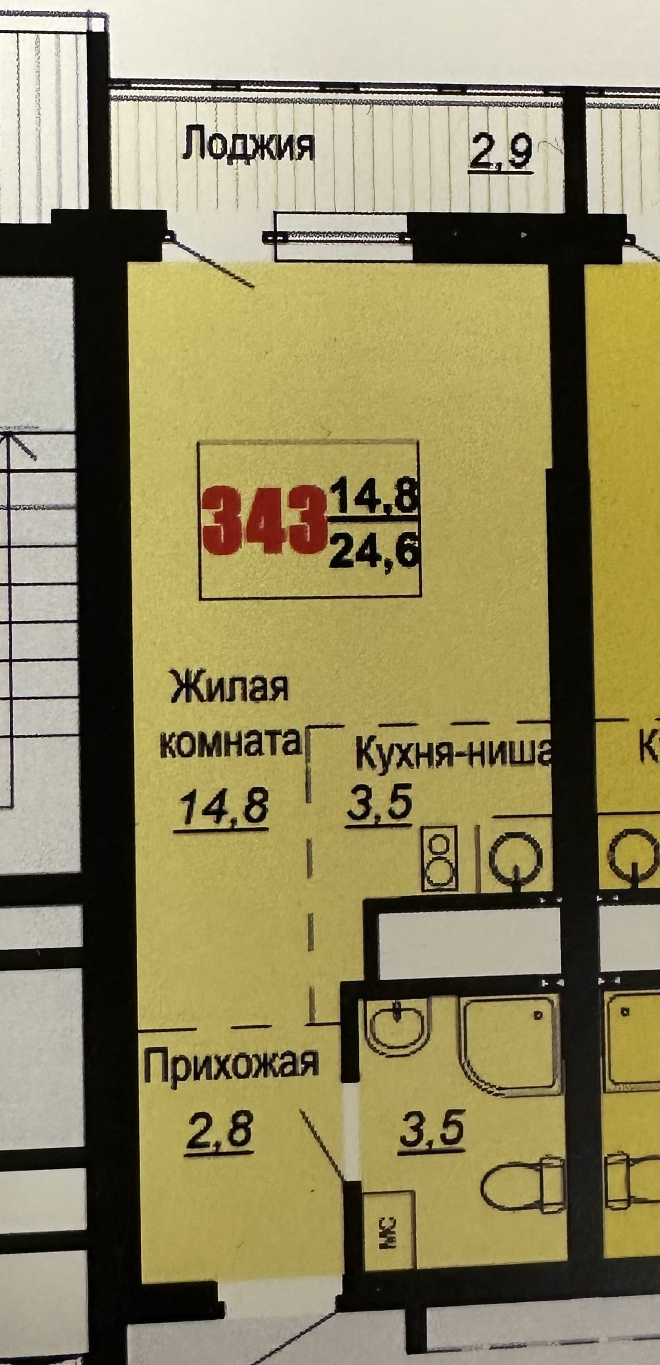 Общая площадь 24.6 м2