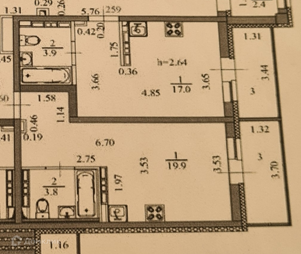 Площадь кухни 2.9 м2
