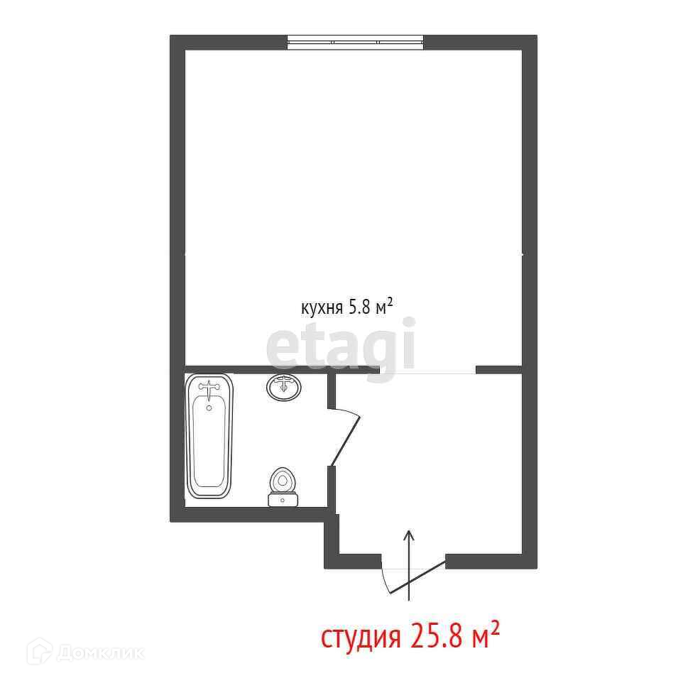 Общая площадь 25.8 м2