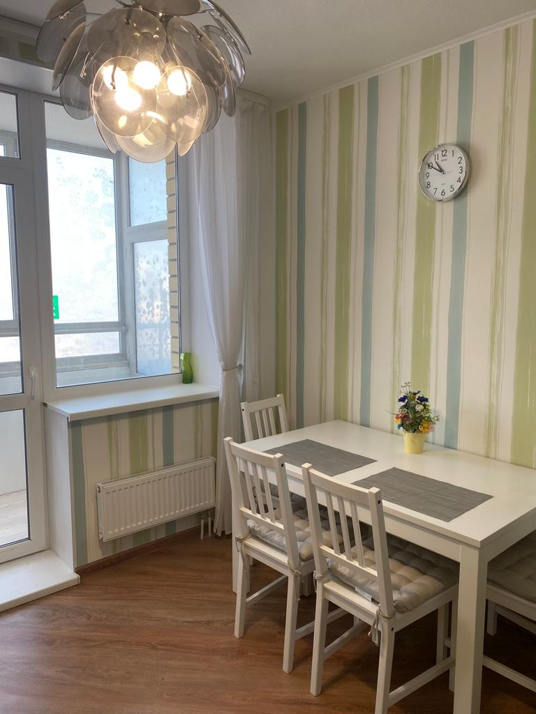 При продаже остается кухонный гарнитур со встроенной техникой (варочная поверхность, духовка, вытяжка), в коридоре большой шкаф-купе, в комнате стенка-горка.