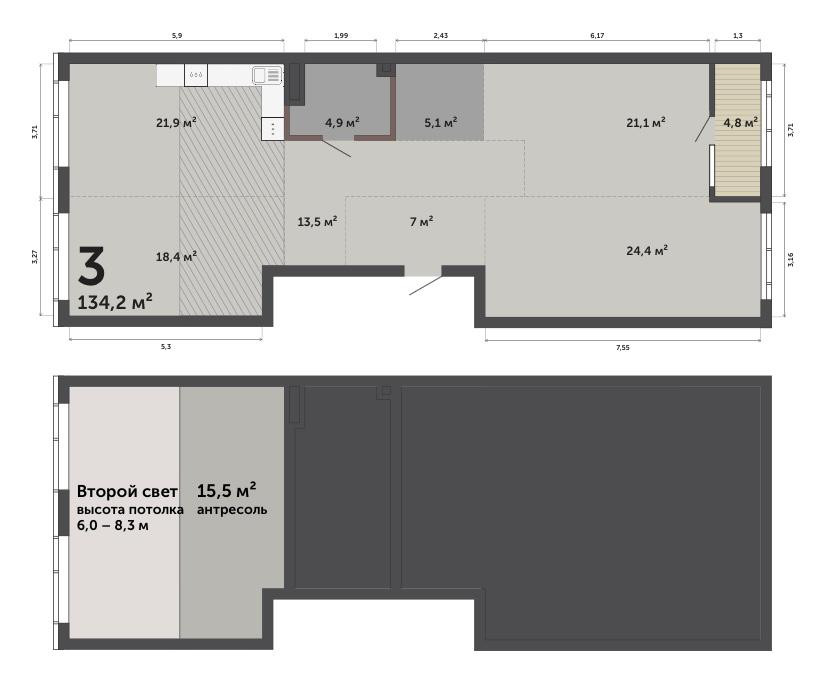Высота потолков 3 м
