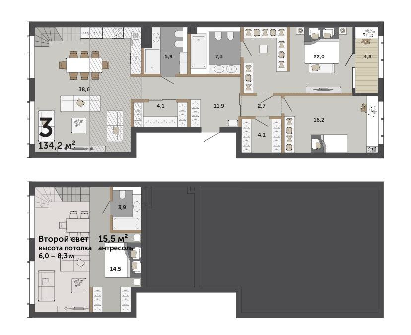 Общая площадь 134.2 м2
