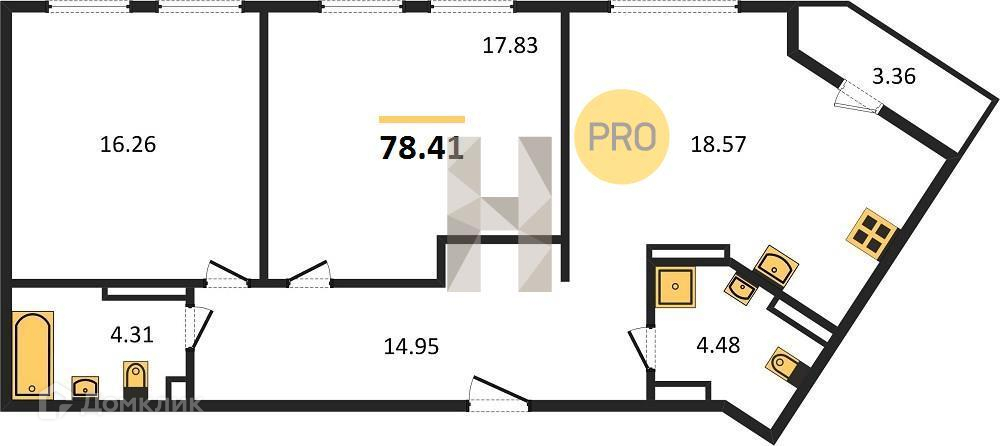 Общая площадь 78.41 м2