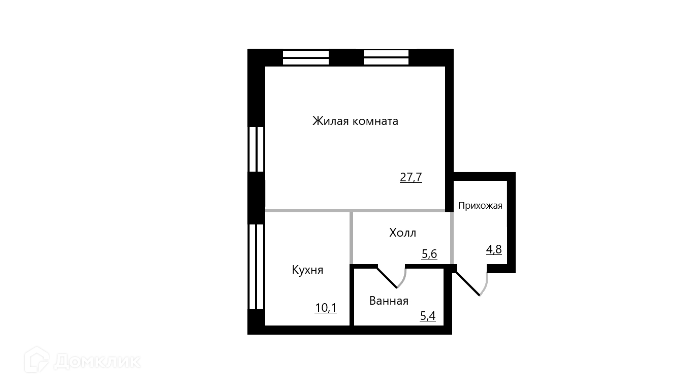 Жилая площадь 27.7 м2
