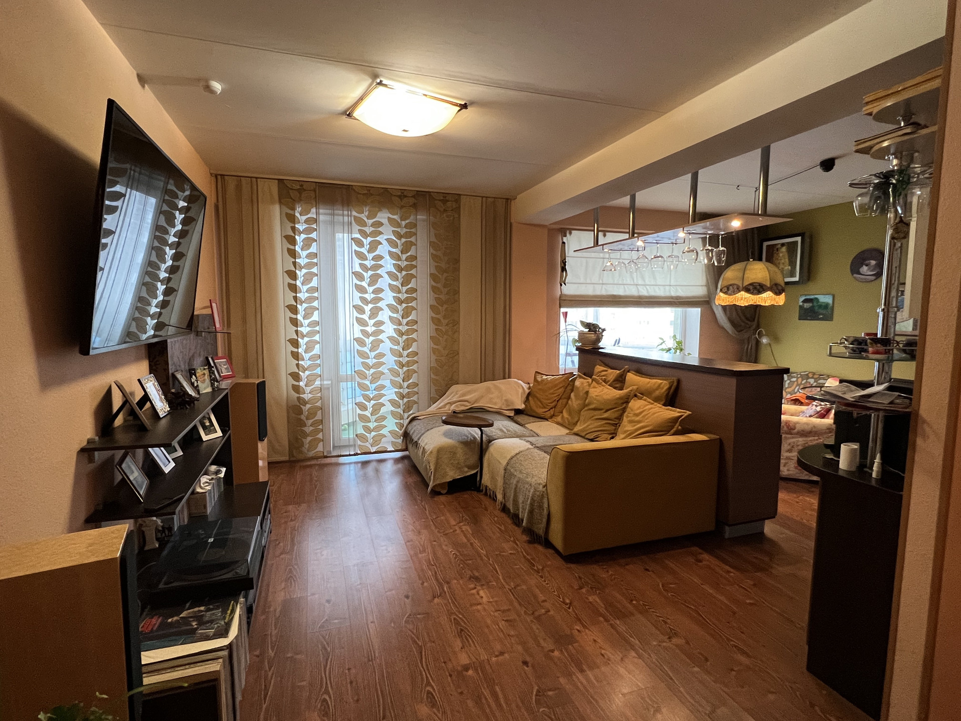 - Удачная и продуманная планировка: просторная кухня-гостиная с выходом на лоджию с панорамными окнами, две изолированных спальни, 2 с/у, вместительная гардеробная, большая и функциональная прихожая. Все окна выходят во двор!
