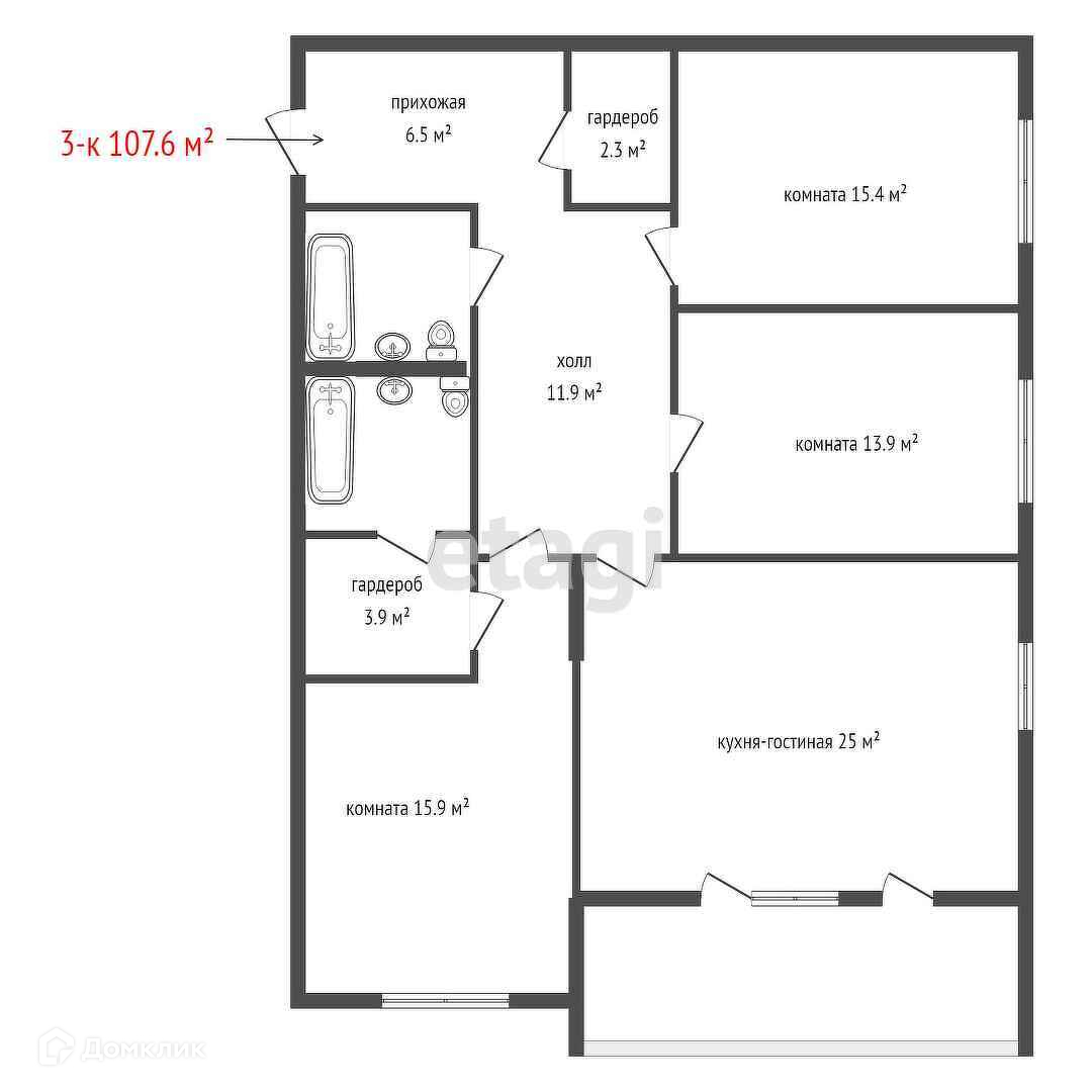 Общая площадь 107.6 м2
