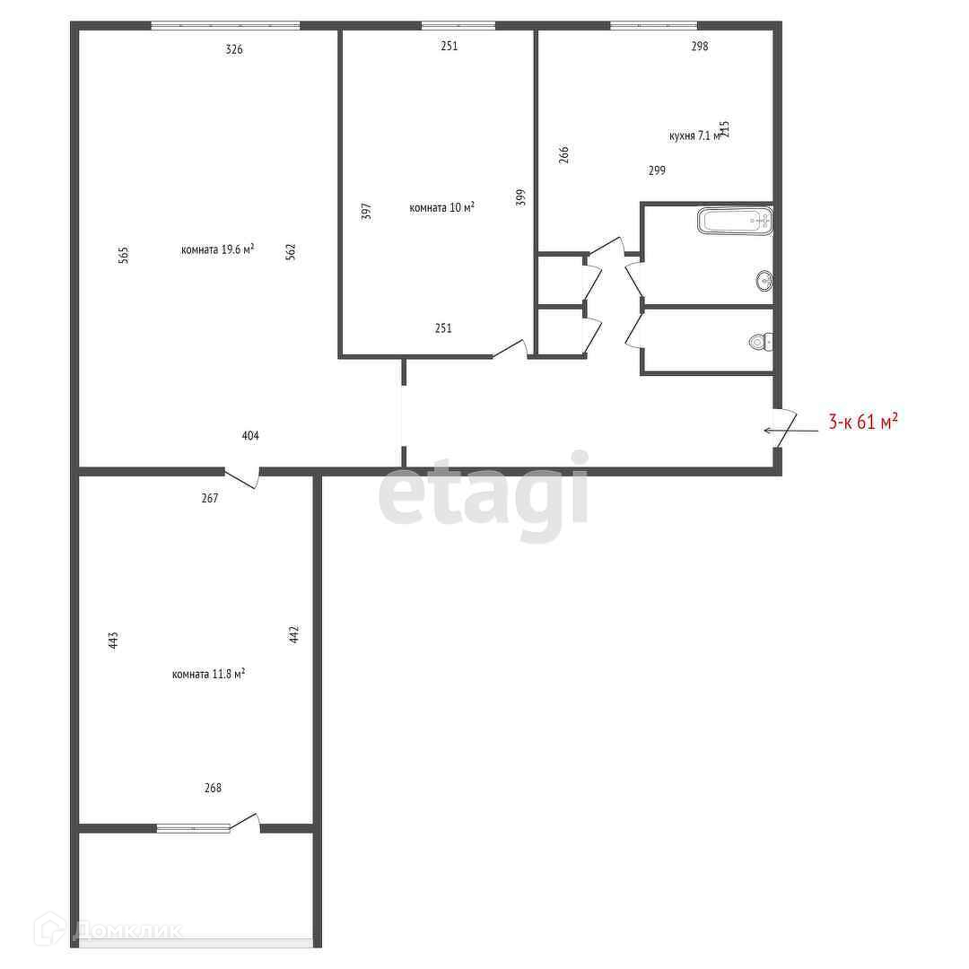 Общая площадь 61 м2