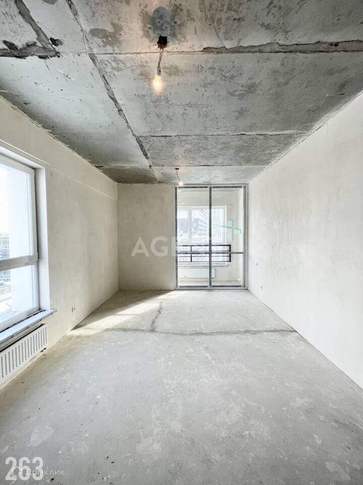 У данной квартиры функциональная планировка, которая сочетает просторную кухню-гостиную, которая будет местом
