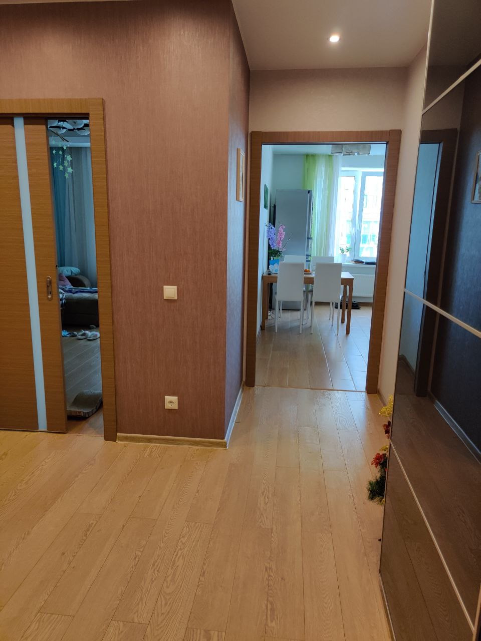 Продается замечательная квартира с удобной планировкой в доме спец. проекта ЖК «Времена года». Отличное состояние квартиры. Сделан качественный, дорогой ремонт. На кухне, ванной и прихожей установлен электрический теплый пол с умным регулятором работы. В гостиной теплый пол уложен под ламинат.  Второй сан.узел переделан под гардеробную.