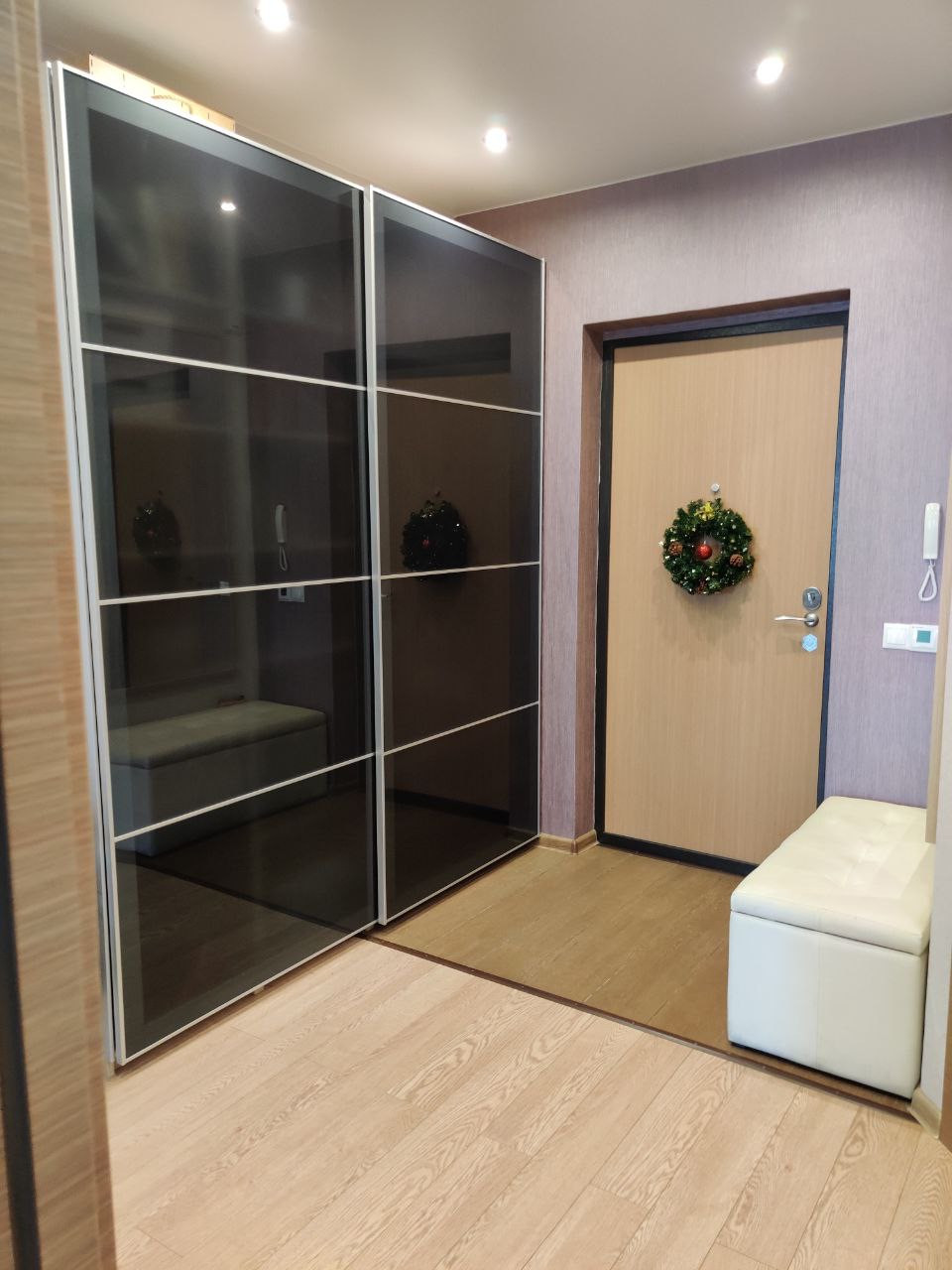 Установлена автентическая система защиты от протечек, дополнительный фильтр горячей и холодной воды. Установлены межкомнатные двери фирмы Sofia с итальянской фурнитурой. Дверь в гостиной потайная и задвигается в стену. В подарок покупателям остается кухонный гарнитур со встроенной бытовой техникой, шкаф купе в прихожей, мебель в гардеробной. Дополнительно можно приобрести машиноместо в паркинге.