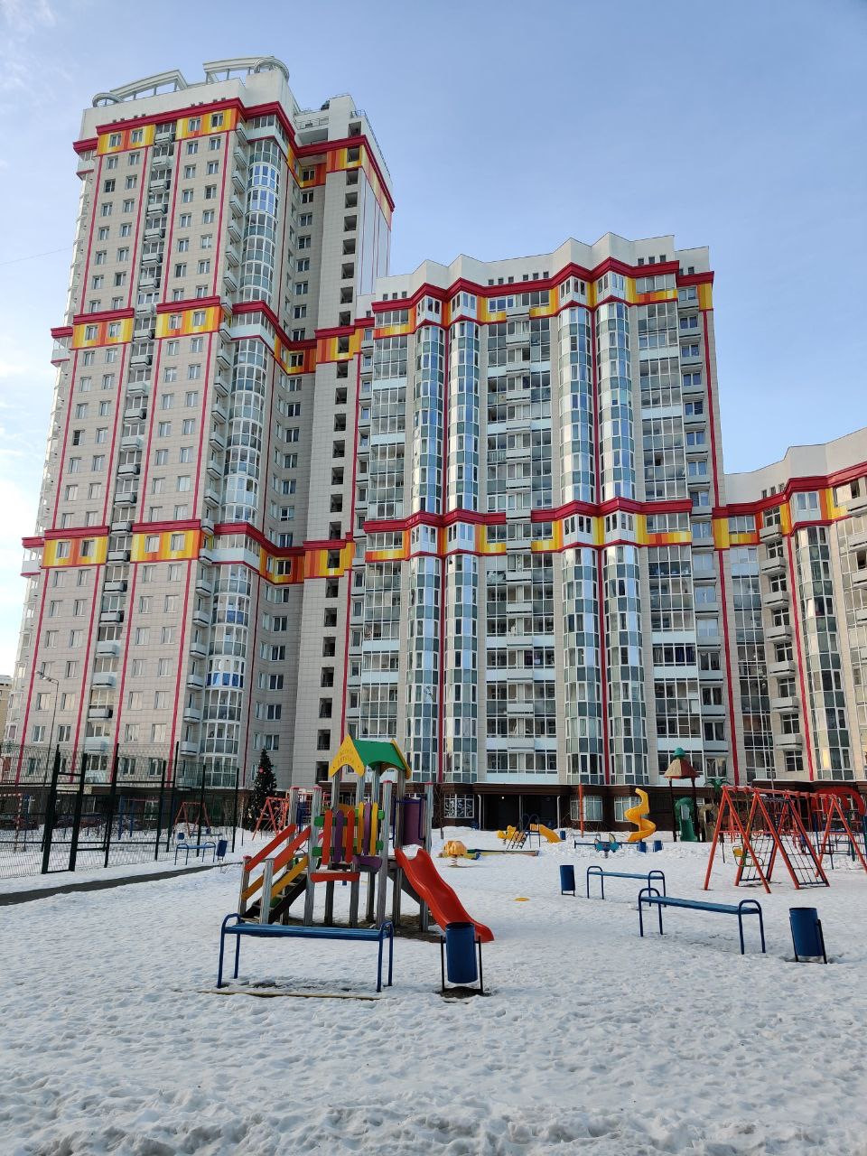 У дома закрытая охраняемая территория с видеонаблюдением. Во дворе есть детские и спортивные площадки