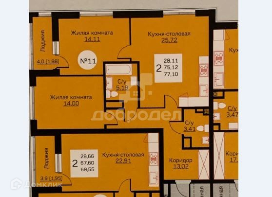 Общая площадь 77 м2