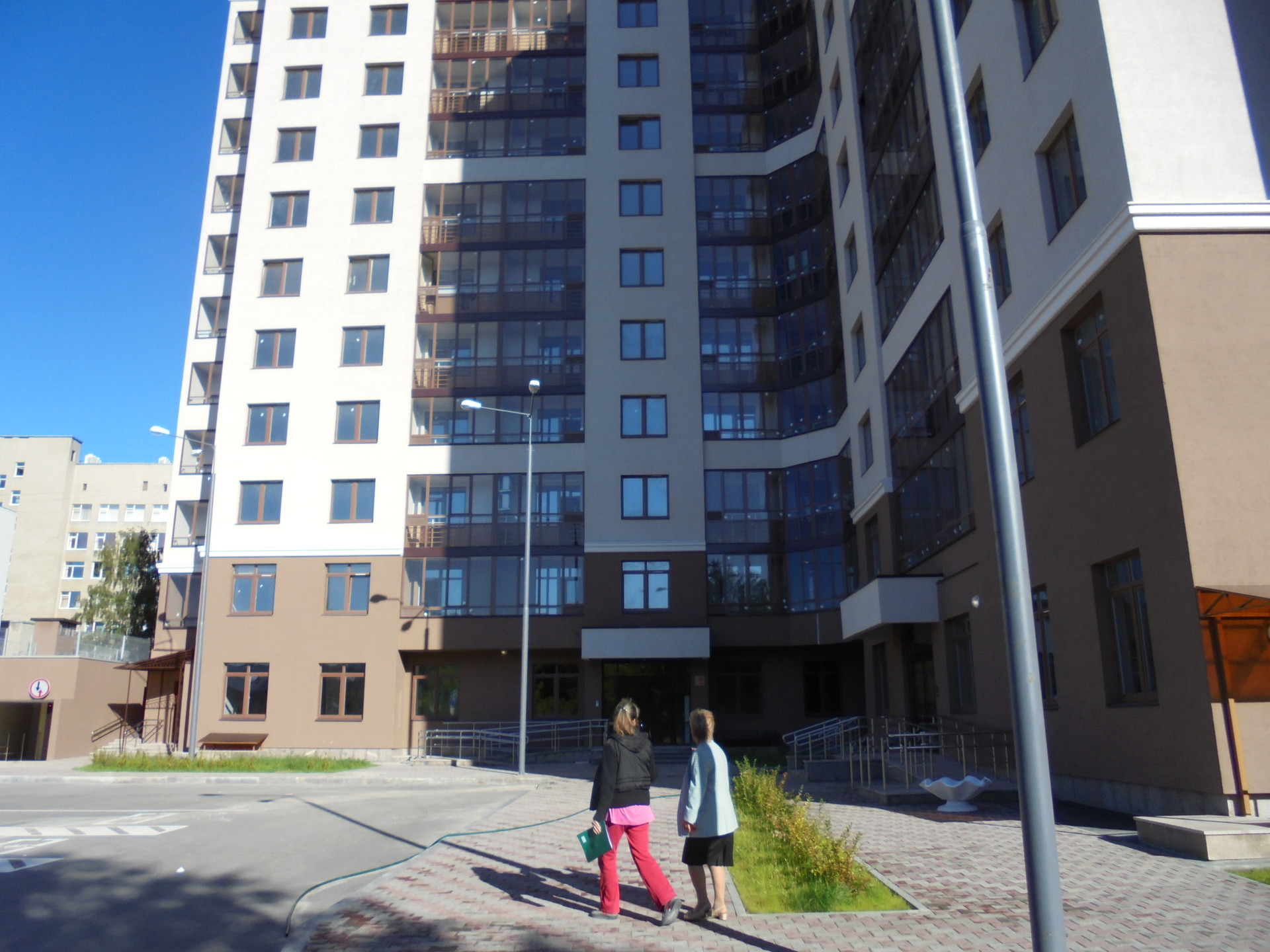 Во дворе дома на закрытой территории расположены площадки для спорта и отдыха  детей и взрослых. Рядом с комплексом расположен  корт для занятий волейболом и баскетболом в летнее время и хоккеем в зимнее.