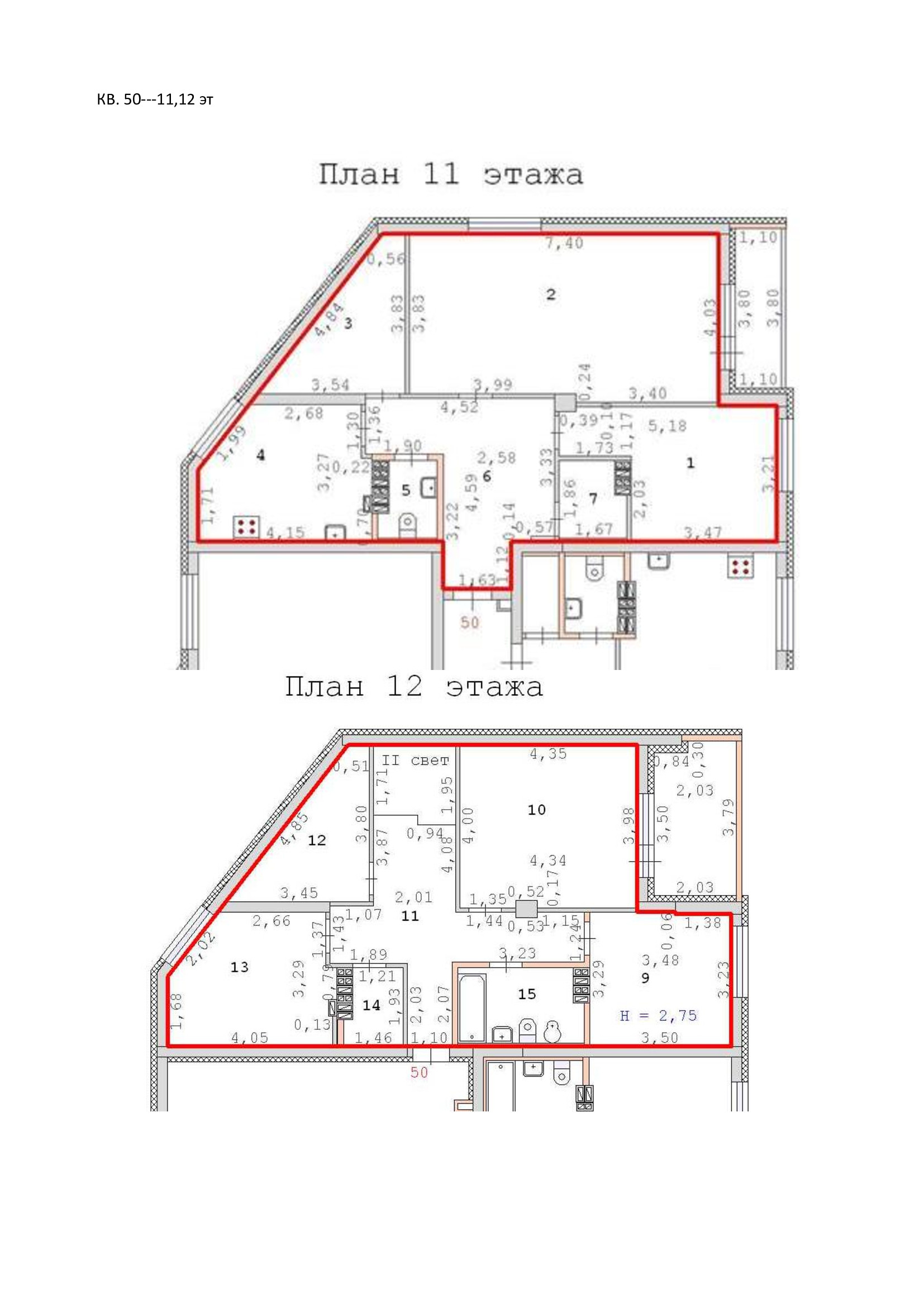 Высота потолков 2.75 м