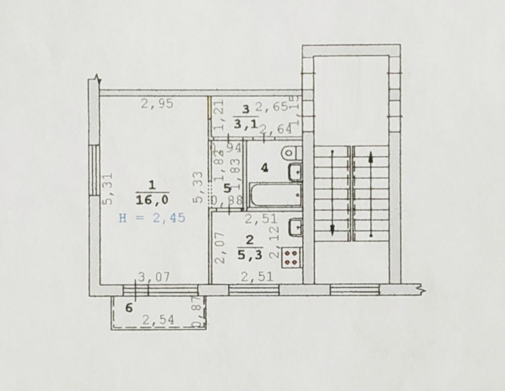 1-х комнатная квартира, панельный дом, 2/5 этаж.  Общая площадь 29,1 кв. м. плюс балкон. Комната 16 кв. м. изолирована от кухни 5,3 кв. м., санузел совмещенный. Перепланировка согласована. Квартира светлая, окна выходят на две стороны.