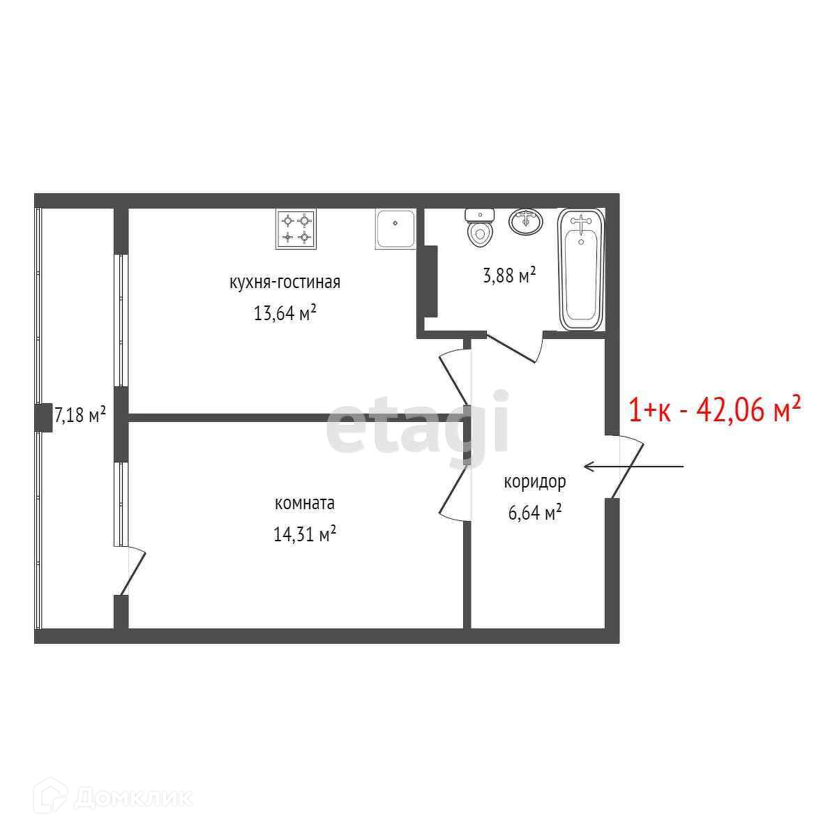 Общая площадь 42.06 м2