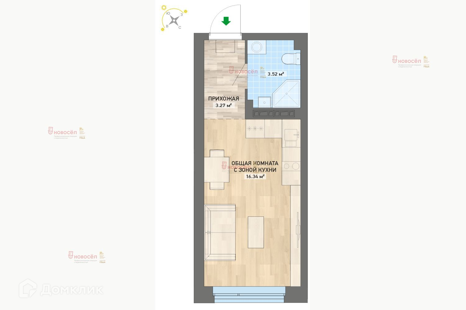Общая площадь 23 м2