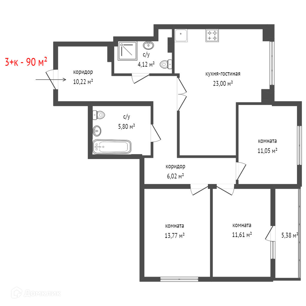 Общая площадь 90 м2