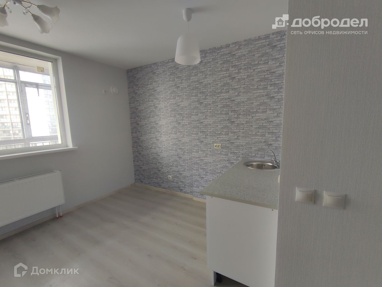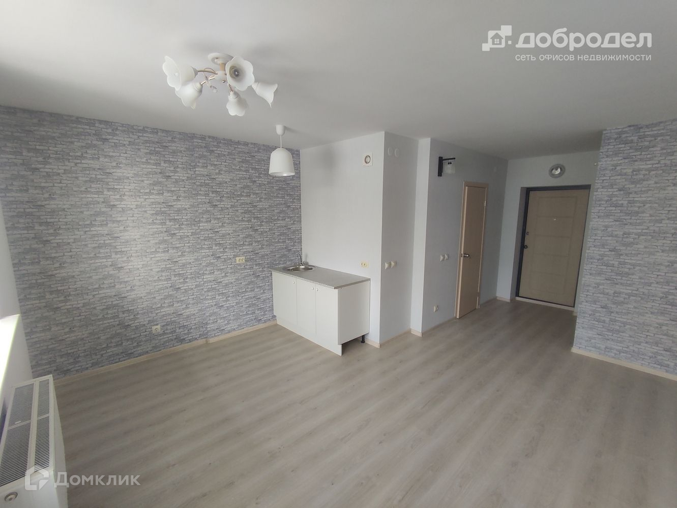 В студии никто не жил, сделан качественный ремонт, постелен ламинат, в ванной плитка. Квадратные метры использованы в пользу комнаты. Есть место для гардеробной