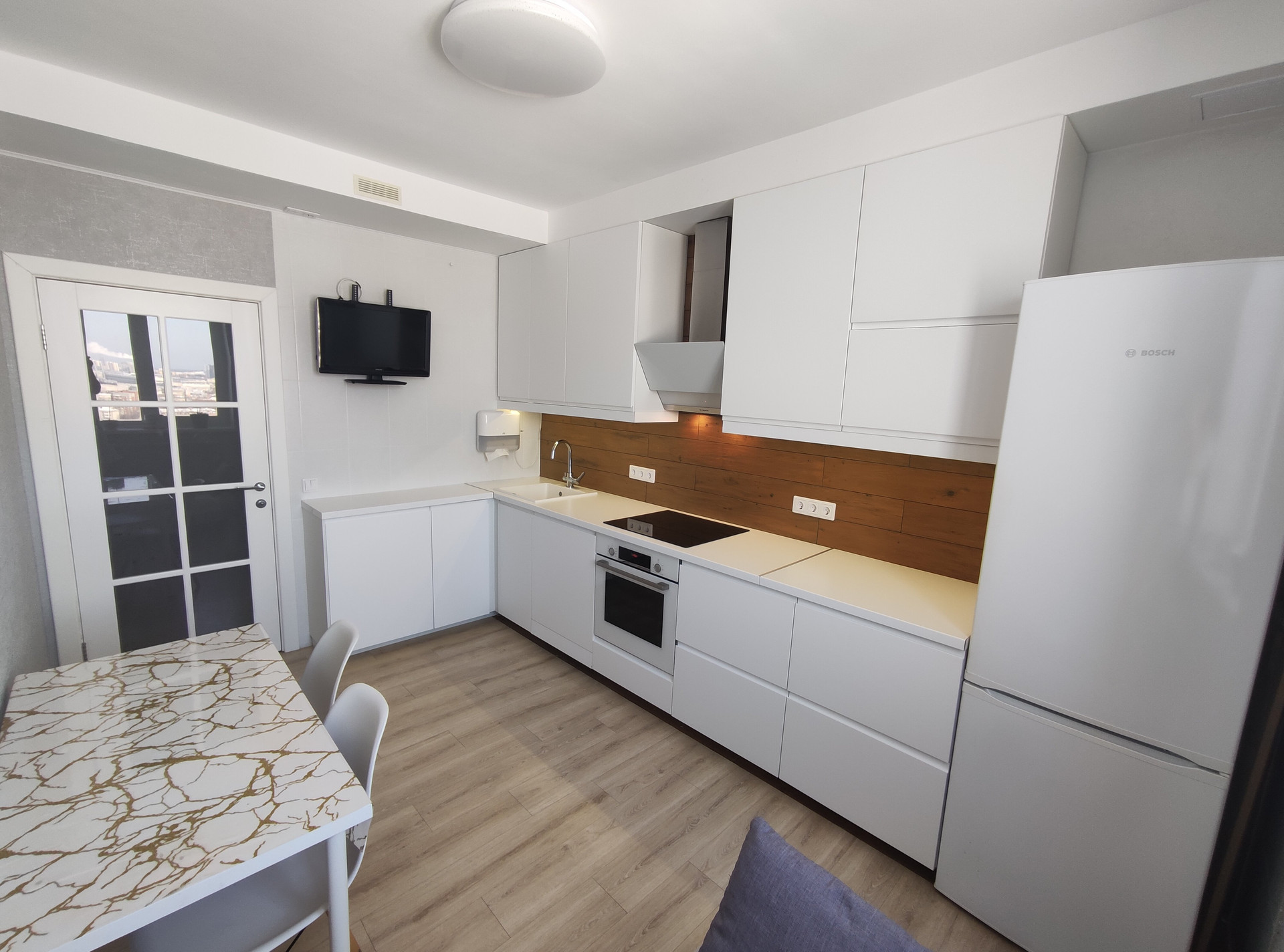 В доме установлена дистанционная система сбора показаний приборов учёта: (электричество, вода, тепло). Магистральные фильтры для воды. На кухне и в санузле пол с подогревом. По всей квартире уложена кварцвиниловая плитка.