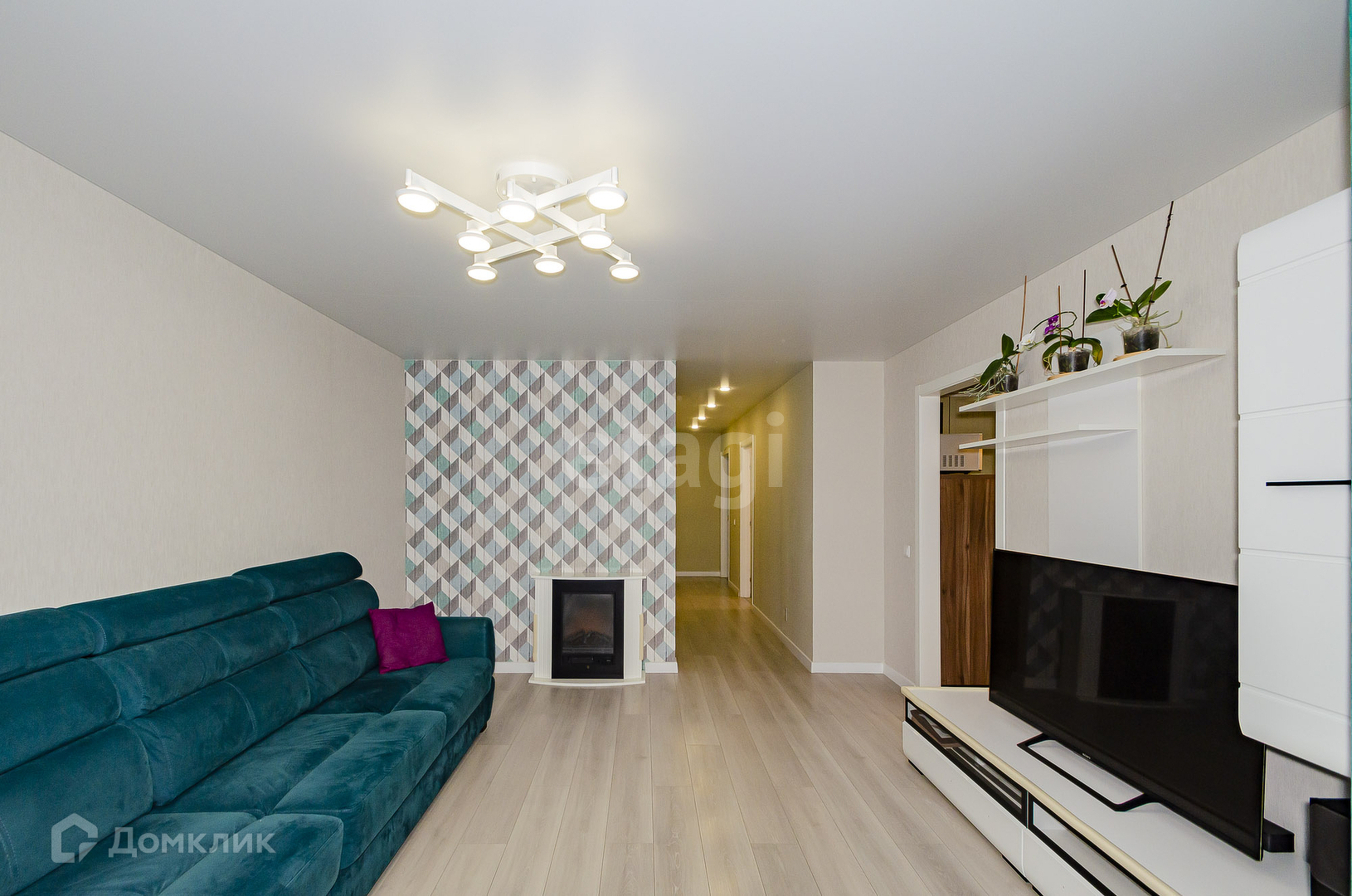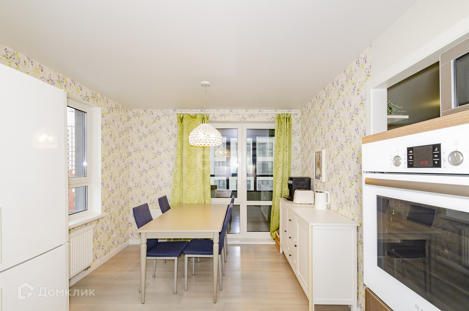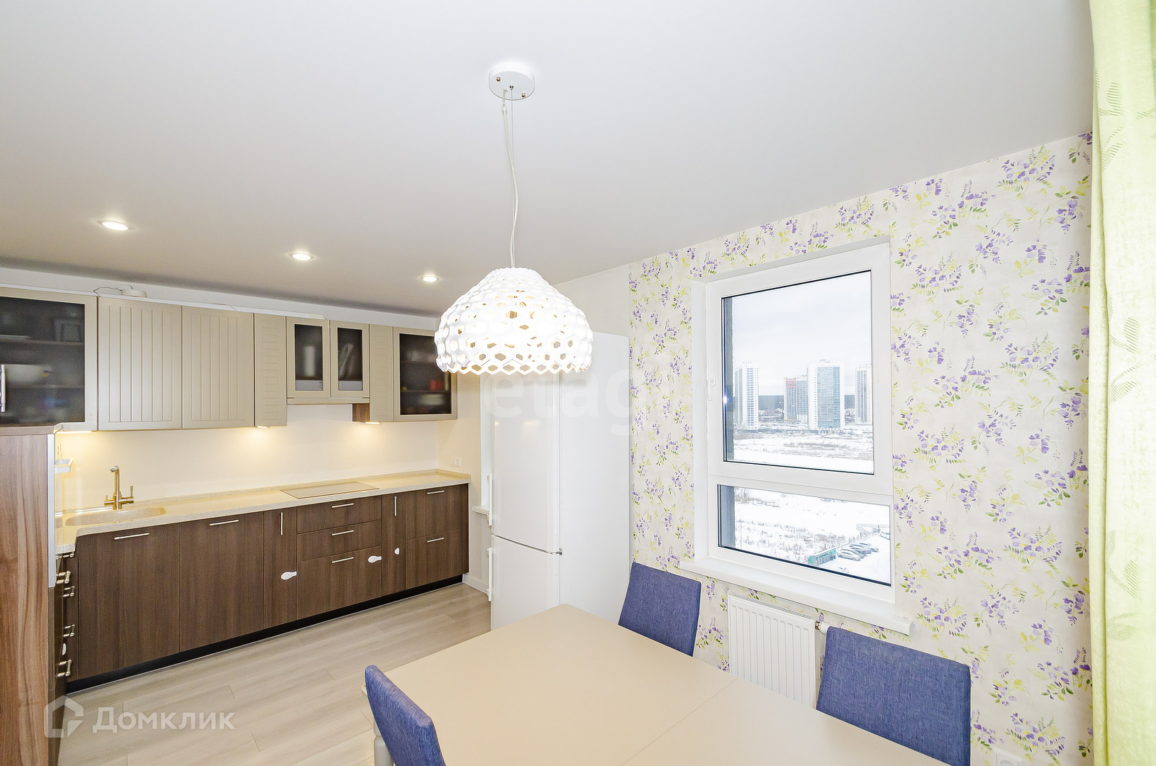 В квартире сделан качественный ремонт: ламинат,  натяжные потолки с точечной подсветкой. В кухне-гостиной встроенный кухонный гарнитур с индукционной варочной поверхностью и питьевой фильтр воды останется в подарок новому владельцу. Два раздельных санузла. В ванной комнате современная плитка и теплый пол с подогревом. Есть постирочная, где установлены водонагреватель и фильтры доочистки воды.
