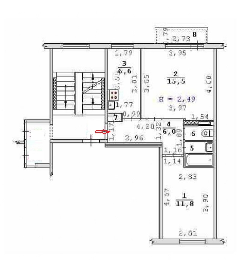 Площадь кухни 6.6 м2