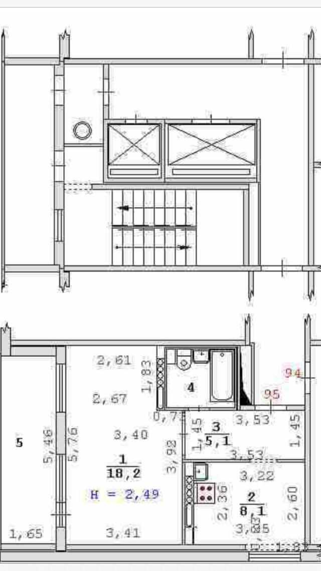 Жилая площадь 18.2 м2