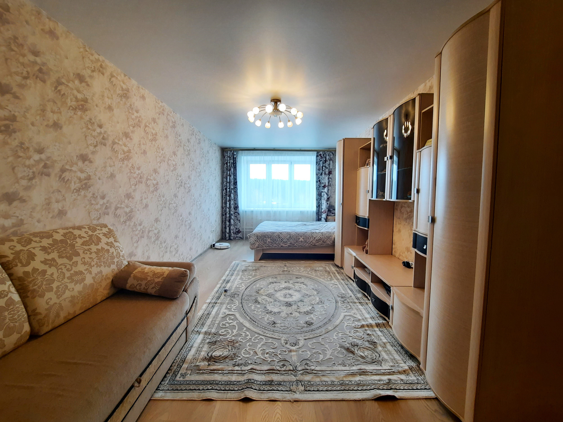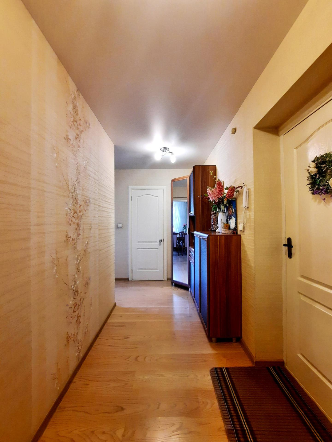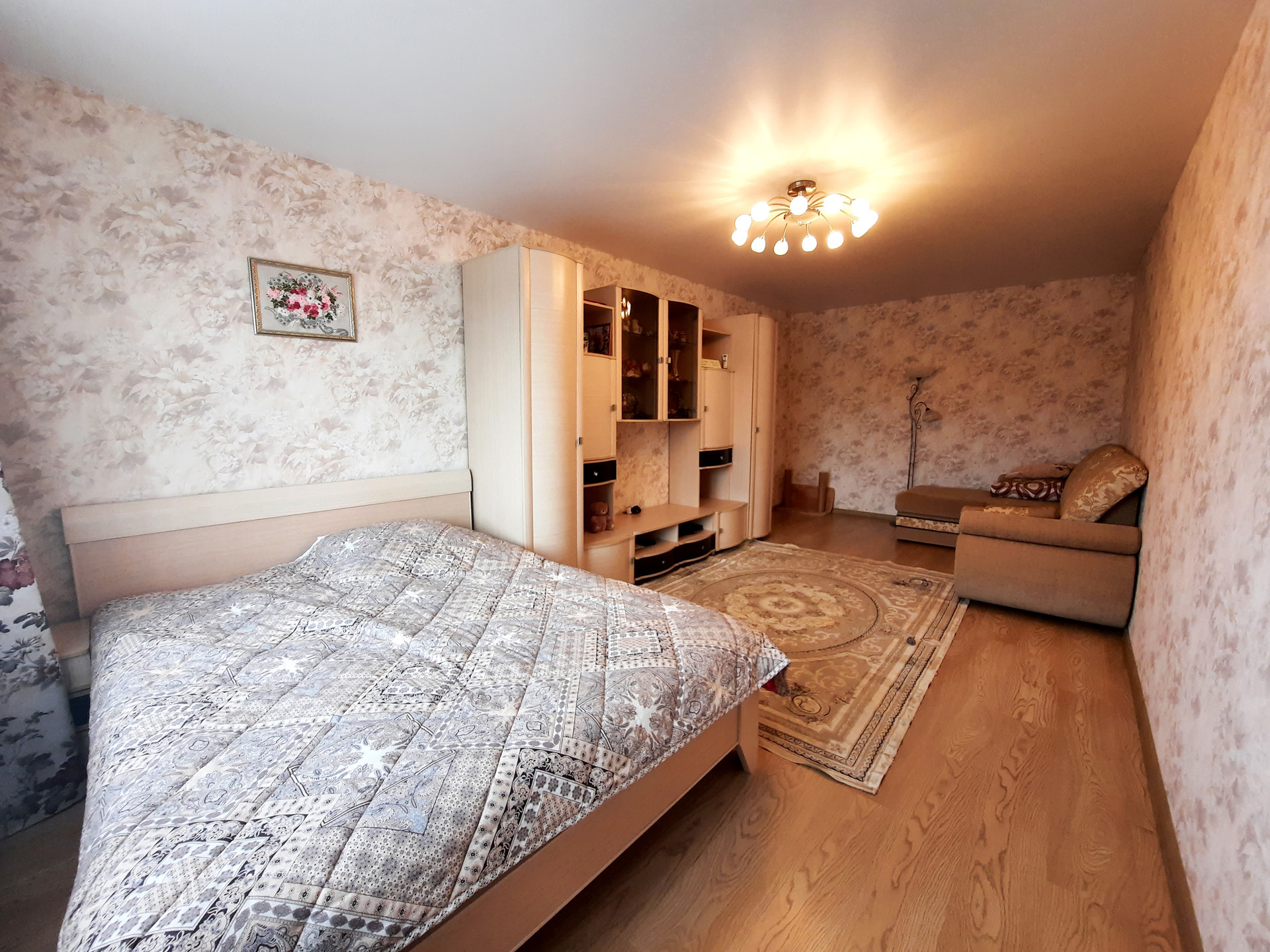 Квартира с качественным ремонтом: натяжной потолок, на полу ламинат, санузел облицован плиткой, новые межкомнатные двери, сейф-дверь (+ деревянная), счётчики на воду.