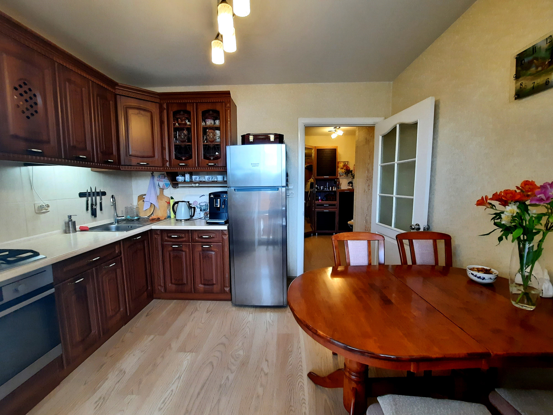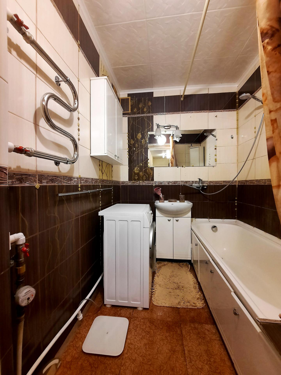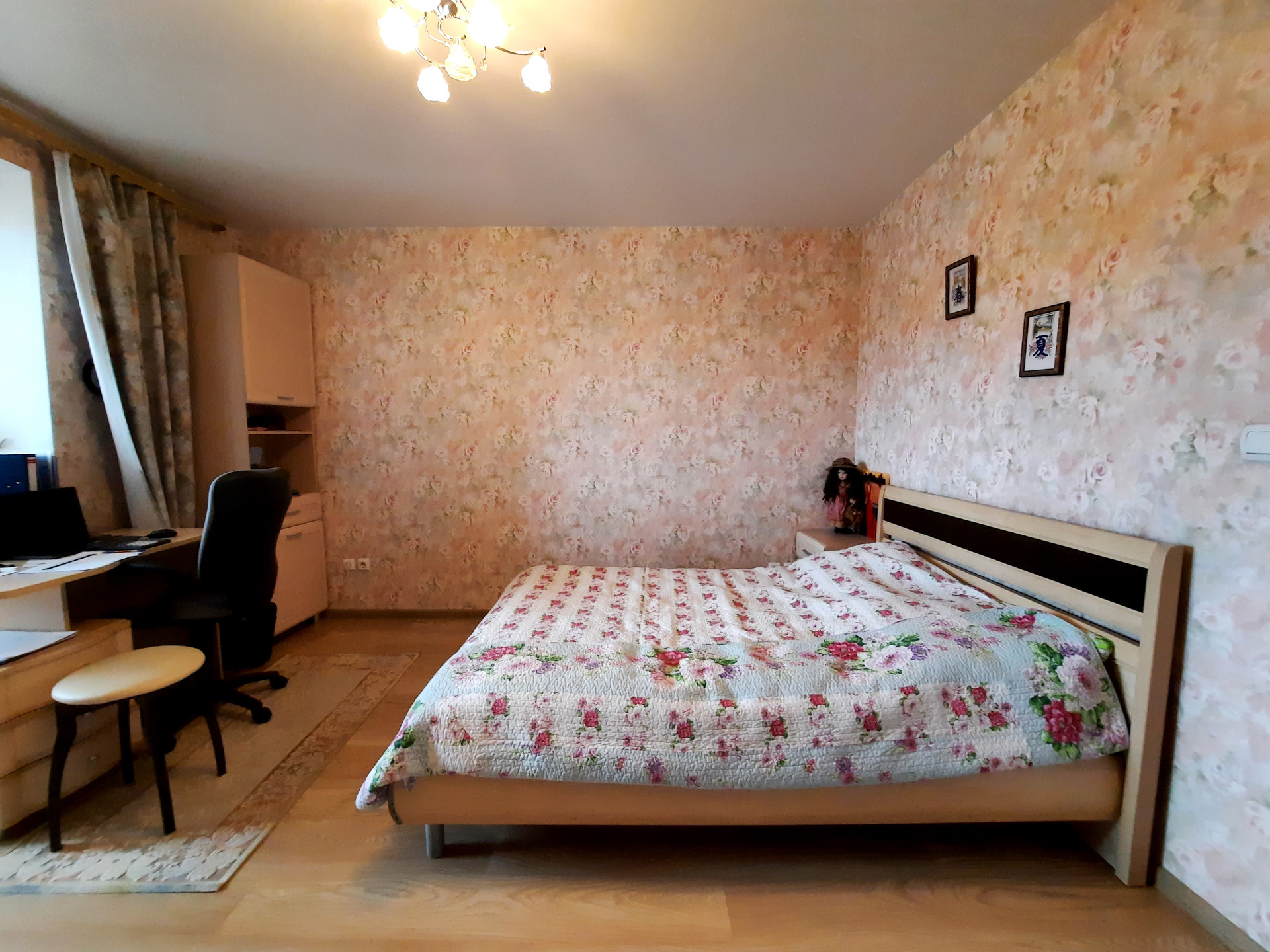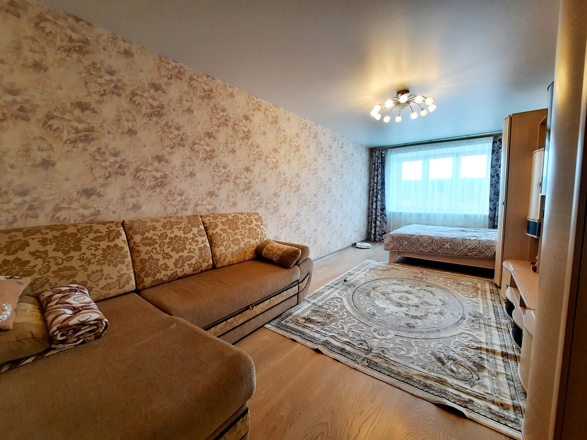 Квартира с качественным ремонтом: натяжной потолок, на полу ламинат, санузел облицован плиткой, новые межкомнатные двери, сейф-дверь (+ деревянная), счётчики на воду.