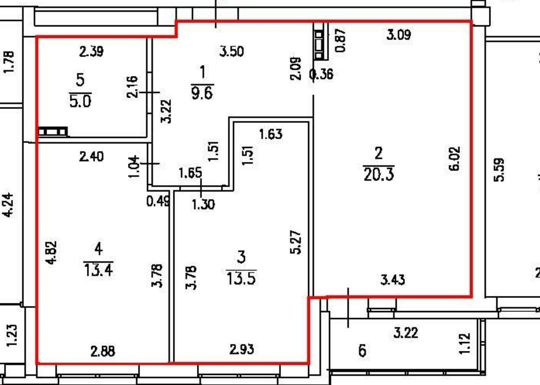 Общая площадь 61.8 м2
